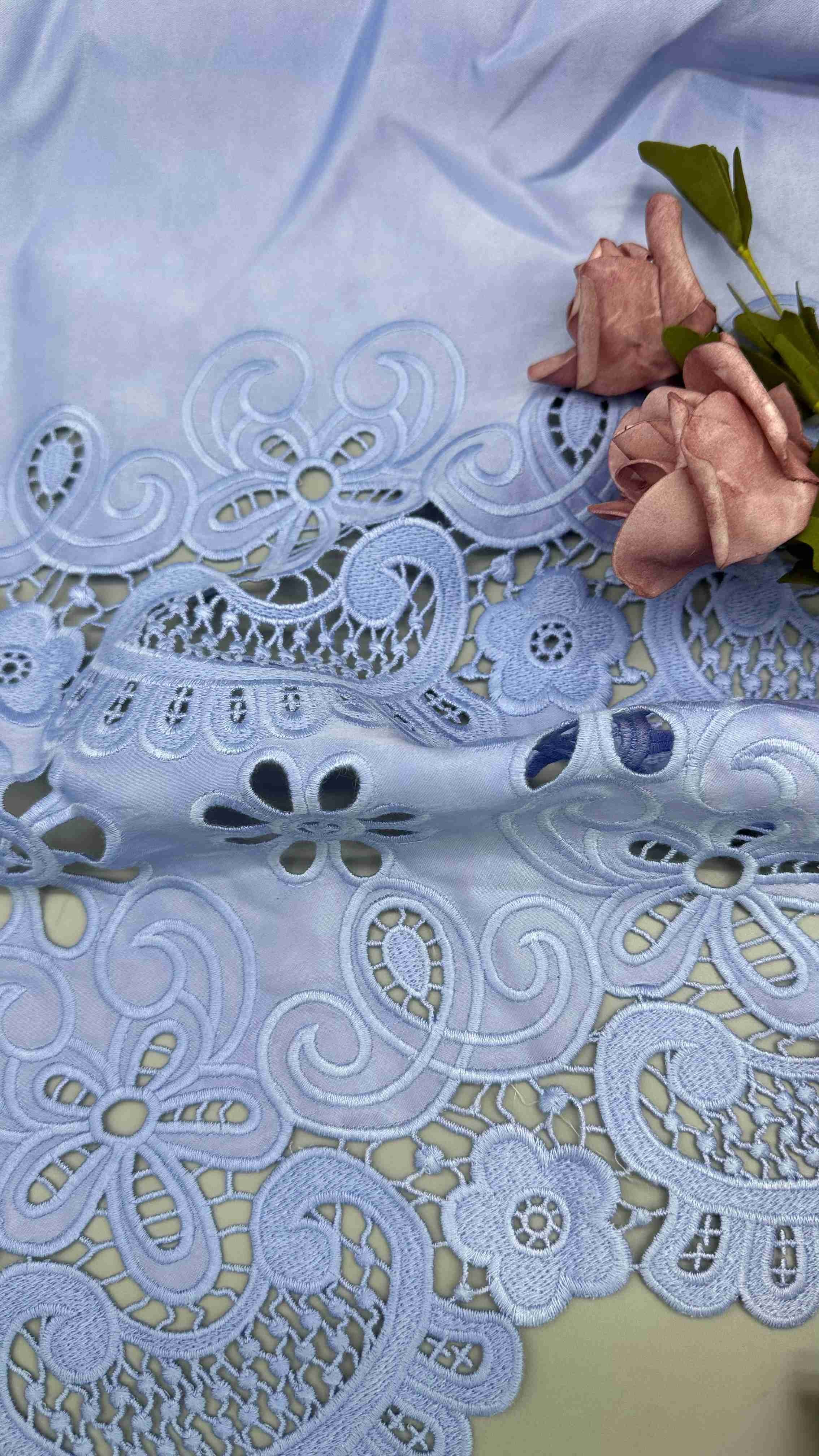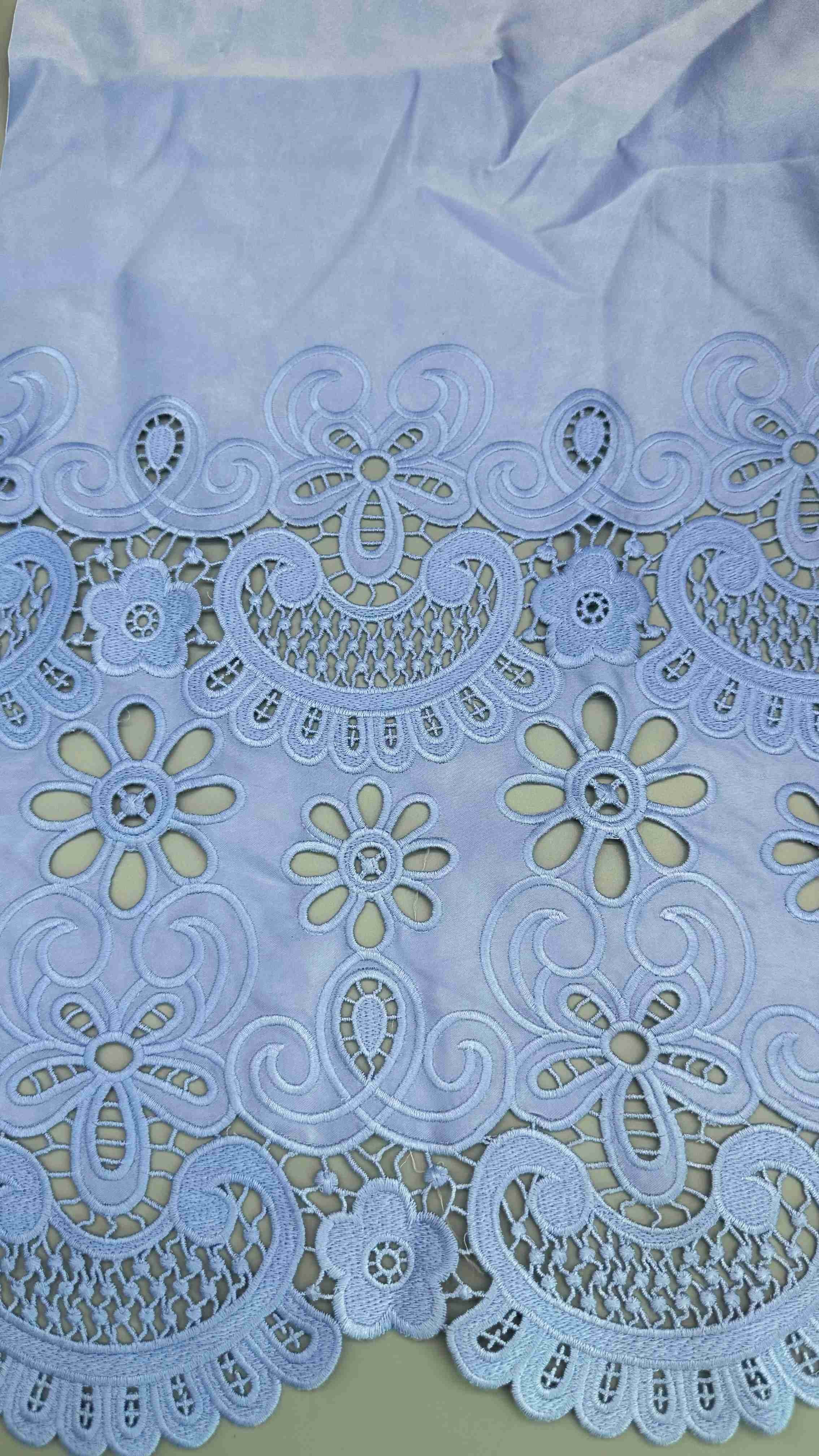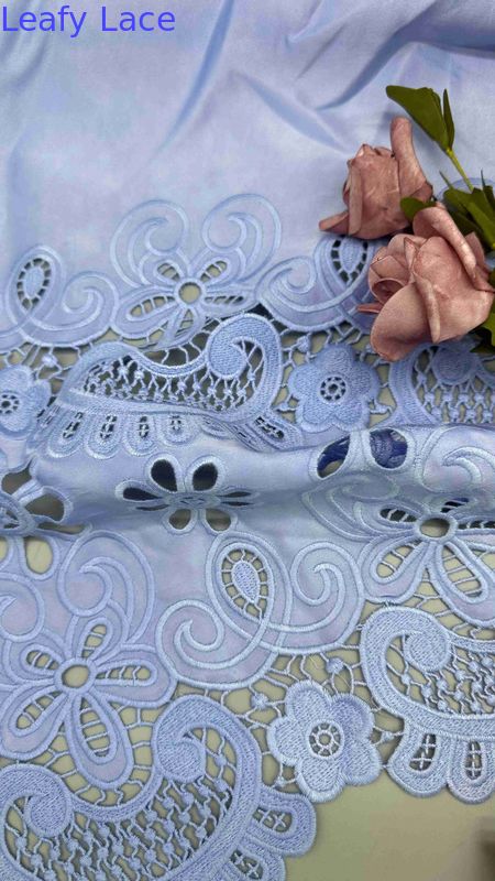Tessuto ricamato a taglio laser Blu chiaro Poly Grpund Tissu ricamato per occhiali per marchi di abbigliamento