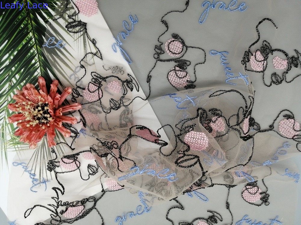 Evidenziare: | Multi Tulle ricamata colorata Mesh Fabric,Tulle Mesh Fabric With Letters,Eco ha ricamato Mesh Lace Fabric |