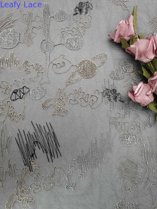 | Evidenziare: | 49" tessuto geometrico del pizzo di Eco,49" Eco ha colorato il tessuto del ricamo,Linea geometrica tessuto colorato del ricamo |