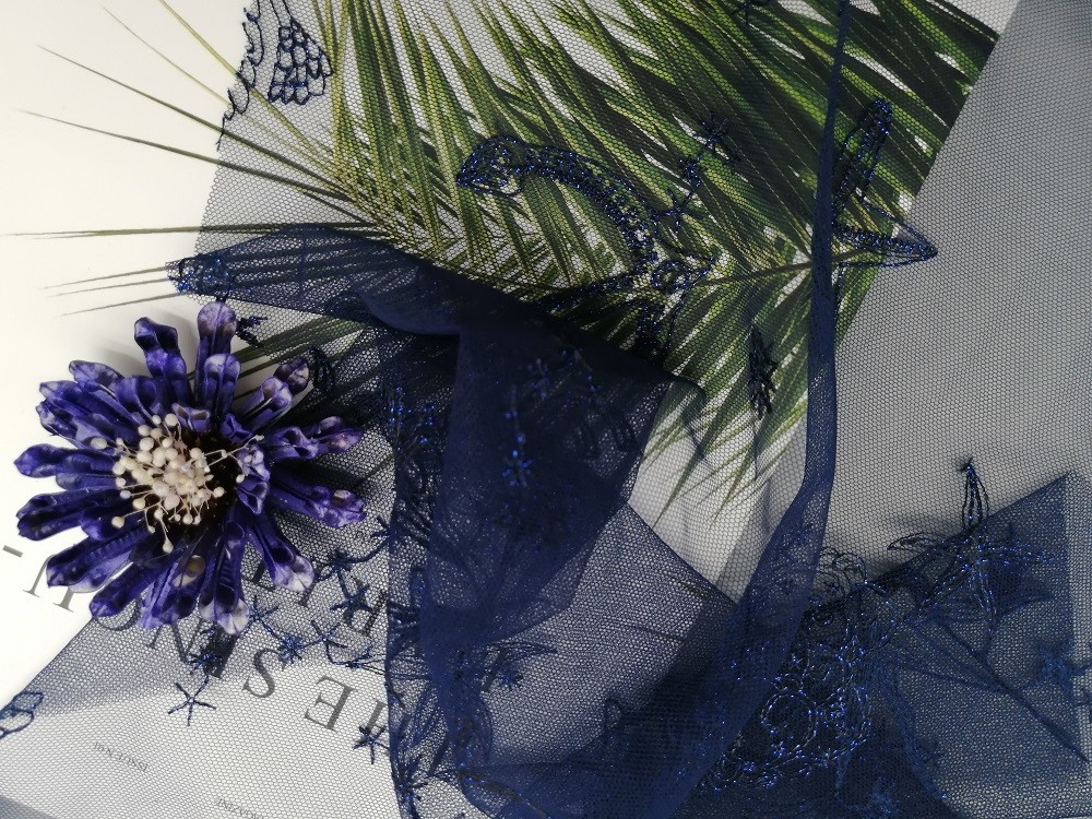 Il tessuto di maglia ricamato del pizzo degli animali di mare di colore della marina per le donne lungamente fiancheggia i vestiti dalle bambine dell'indumento del vestito, i tessuti domestici, la tenda, gli articoli della lettiera, gli abiti, i cappelli, i vestiti da sposa, le bluse, ecc.