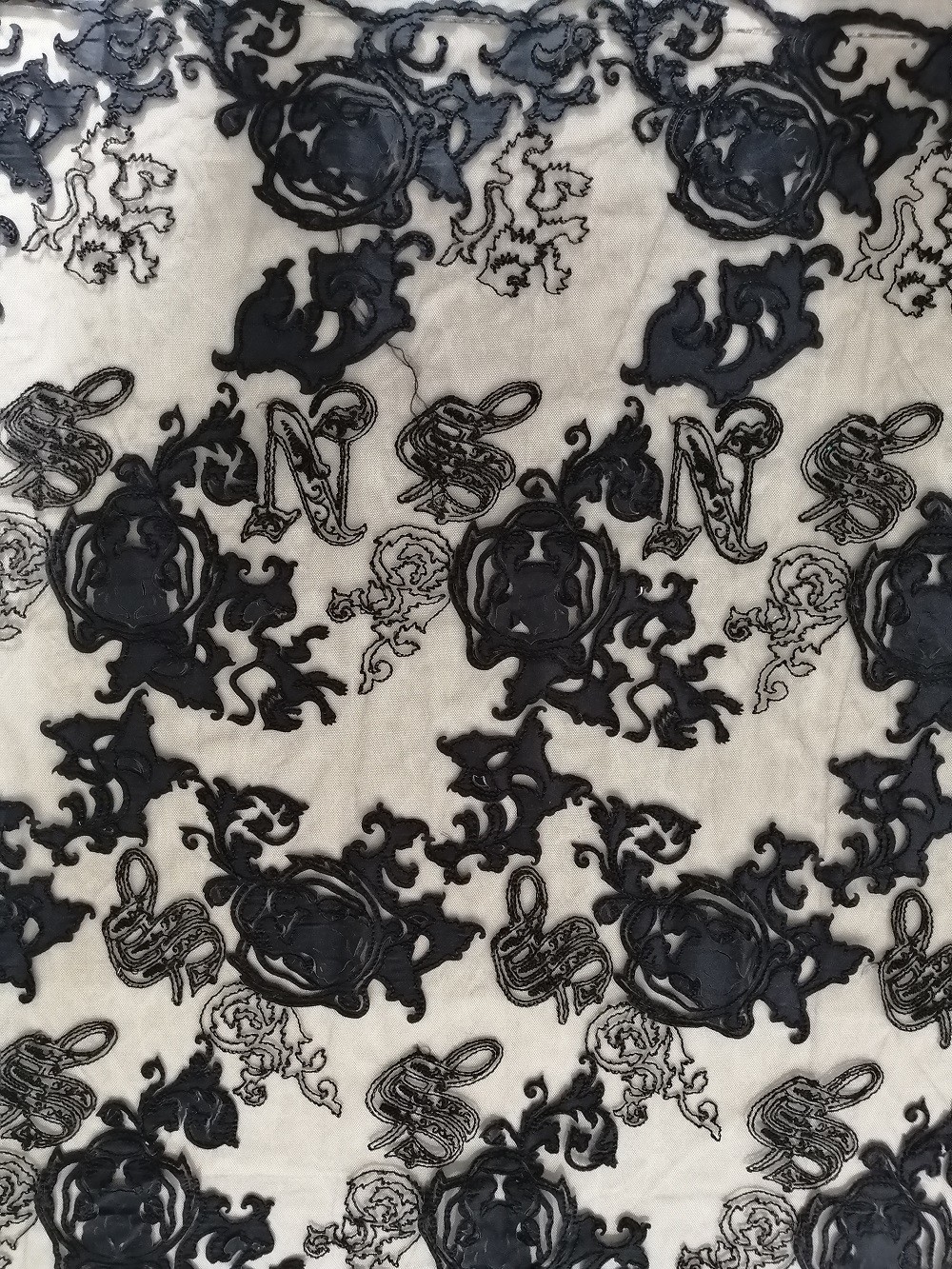 Il tessuto nero del ricamo di applique del pizzo del taglio del laser ha ricamato le specifiche del tessuto del pizzo: