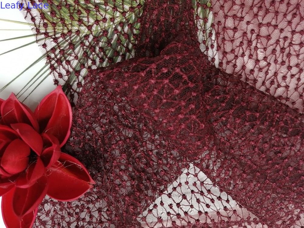Tessuto di Dot Tulle Mesh Embroidered Lace di colore rosso del vino per le specifiche nuziali degli articoli della lettiera del vestito dall'indumento delle donne: