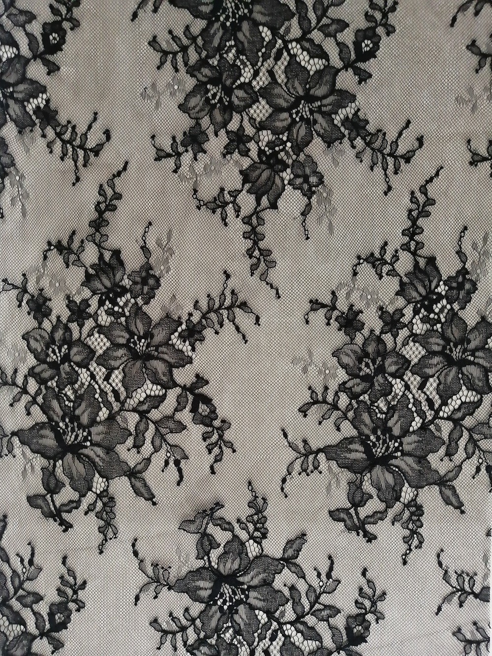 | Evidenziare: | Tessuto francese del pizzo di 145CM Chantilly,Tessuto francese floreale nero del pizzo di Chantilly,Tessuto floreale del pizzo del nero del peso leggero di 145CM |