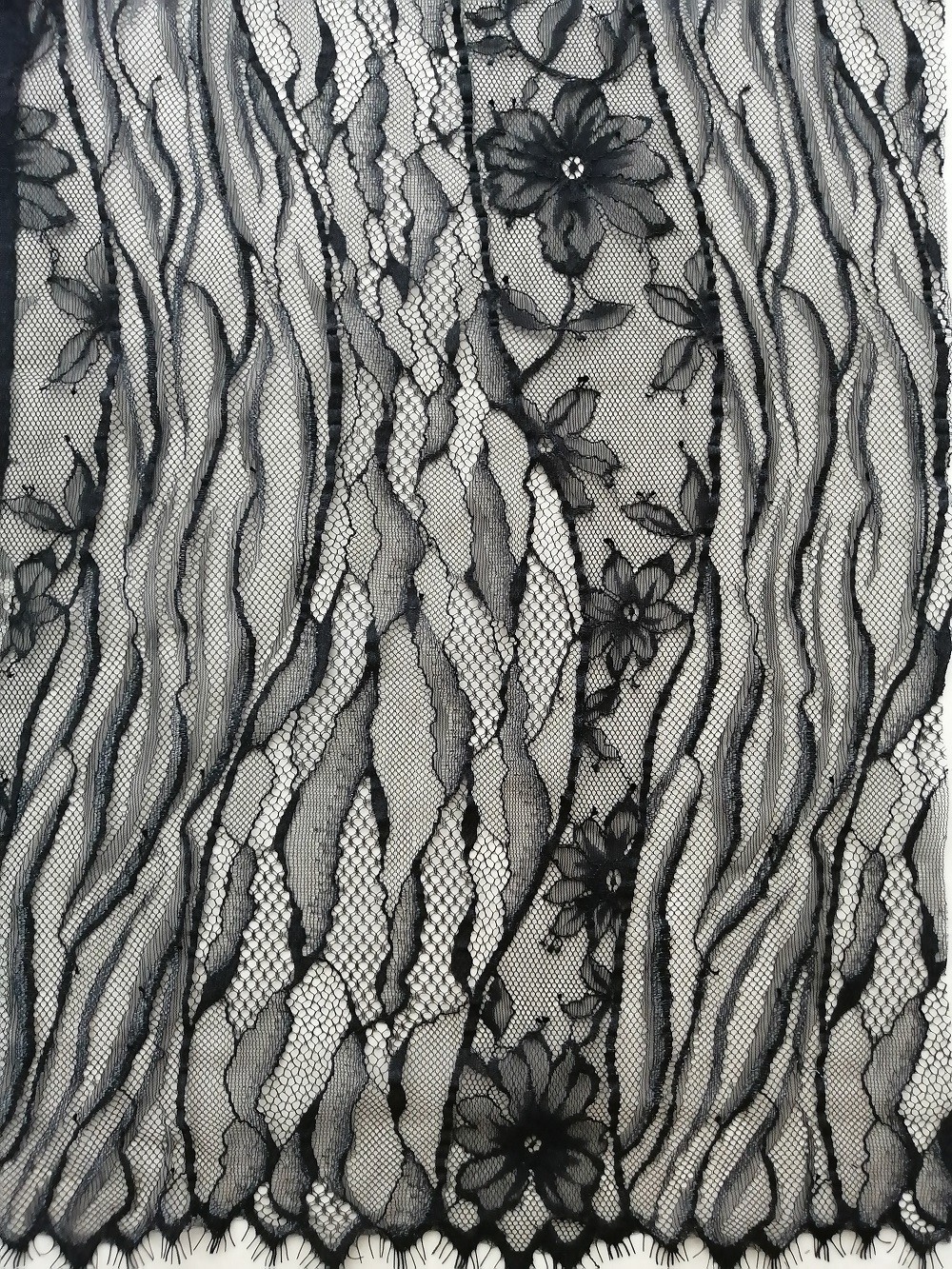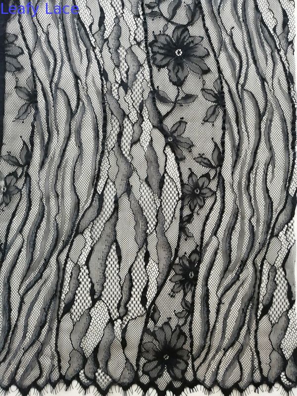 | Evidenziare: | Tessuto francese metallico del pizzo di 145CM Chantilly,Linea tessuto francese del fiore del pizzo di Chantilly,Tessuto metallico nero del pizzo di 145CM Lurex |