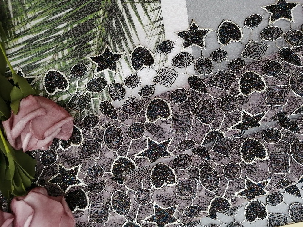 Il tessuto colorato metallico del ricamo di Lurex di forma della stella per il vestito dalla bambina del Dress Garment Brands del vestito da sera di signora è per i tessuti domestici, la tenda, gli articoli della lettiera, gli abiti, i cappelli, i vestiti da sposa, le bluse, l'Garments di signora, la tovaglia, vestiti dalle bambine, adatta le scarpe femminili, i pantaloni, pantaloni, mette, rivestimenti, ecc.