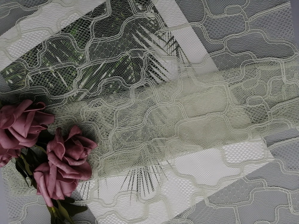 Evidenziare: | Tessuto geometrico francese del pizzo di Chantilly,tessuto geometrico del pizzo del peso leggero di 135cm,135cm Chantilly Mesh Fabric decorativo |