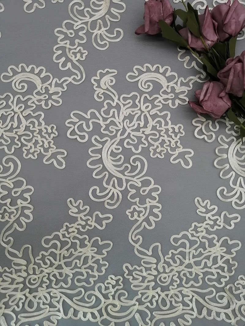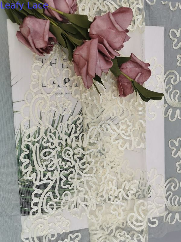 Evidenziare: | Poli tessuto ricamato del pizzo all'uncinetto,Poli tessuto del pizzo all'uncinetto di 125CM,Tessuto del pizzo dell'avorio del ricamo di 125CM |