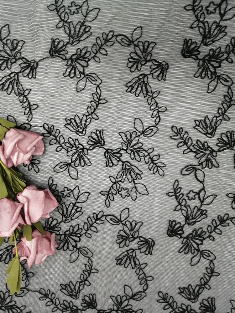 | Stile: | Ricamo nero legato con corde | Caratteristica: | Maglia di Tulle del fiore |
