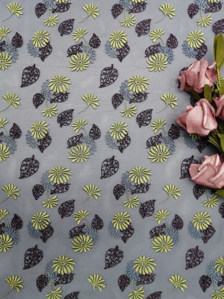| Stile: | Tessuto colorato del ricamo del voile | Caratteristica: | Tulle metallica |