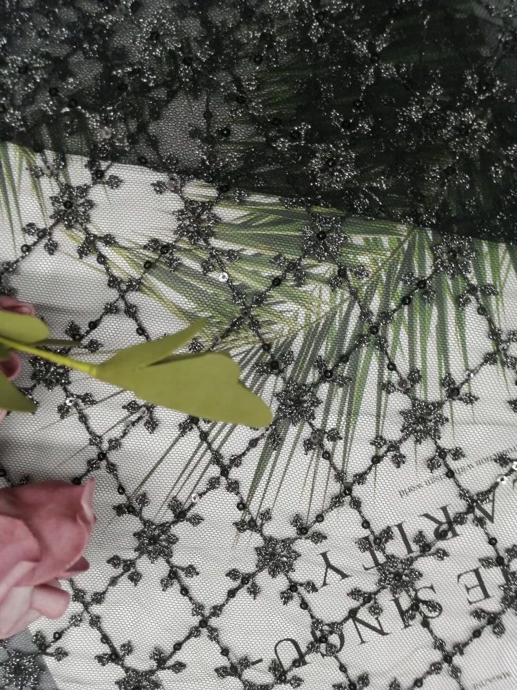 | Evidenziare: | Tulle Mesh Sequin Embroidered Fabric,Tessuto ricamato dello zecchino del ODM,Tessuto ricamato dello zecchino degli articoli della lettiera |