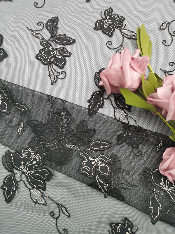 - Materiale: -Il tessuto del ricamo di applique è fatto di terra: FRONTE 100%polyester: 100%polyester. La progettazione floreale tradizionale della Cina è trasformata il tessuto del fondo della maglia di Tulle.