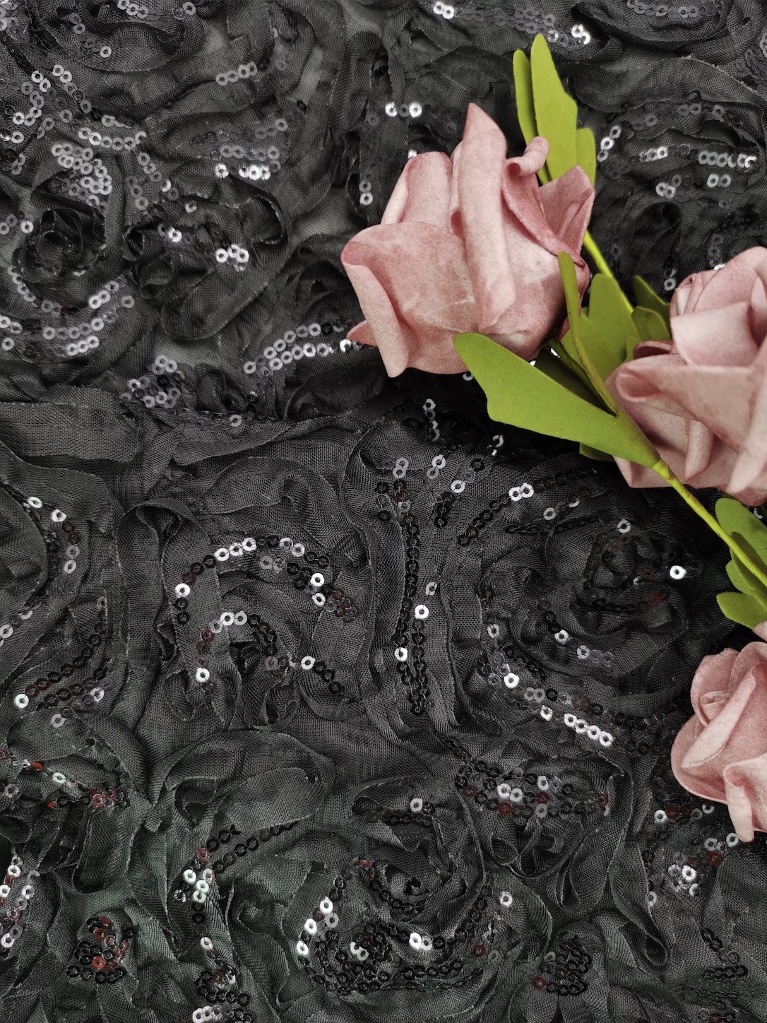 Neri ricamati merlettano lo zecchino di qualità superiore degli zecchini del tessuto per il vestito da sera