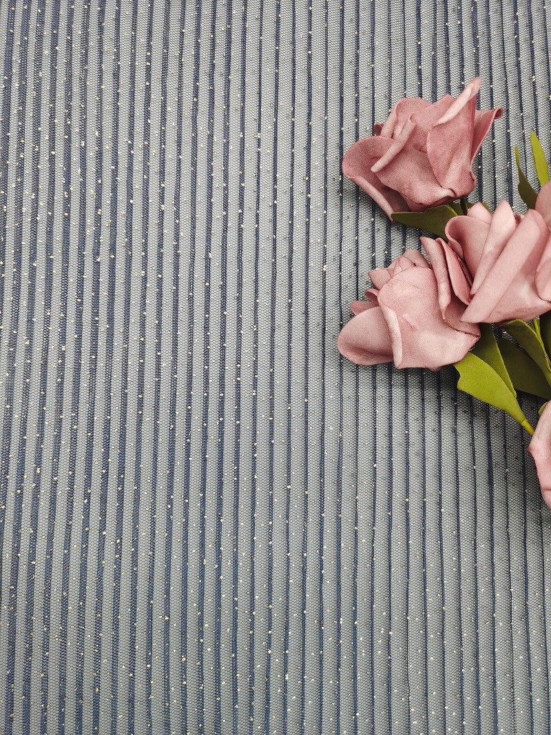 - Materiale illustrativo: La maglia di Tulle è in tintura del pezzo in primo luogo e poi fa la pieghettatura sulla maglia tinta.