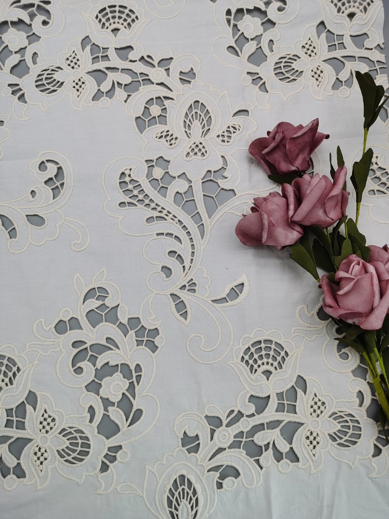 - Materiale: Il tessuto ricamato del pizzo è fatto del tessuto 100% di cotone di alta qualità che è molle. Questo tessuto tagliato eccellente del pizzo del laser fornisce il grande breathability.
