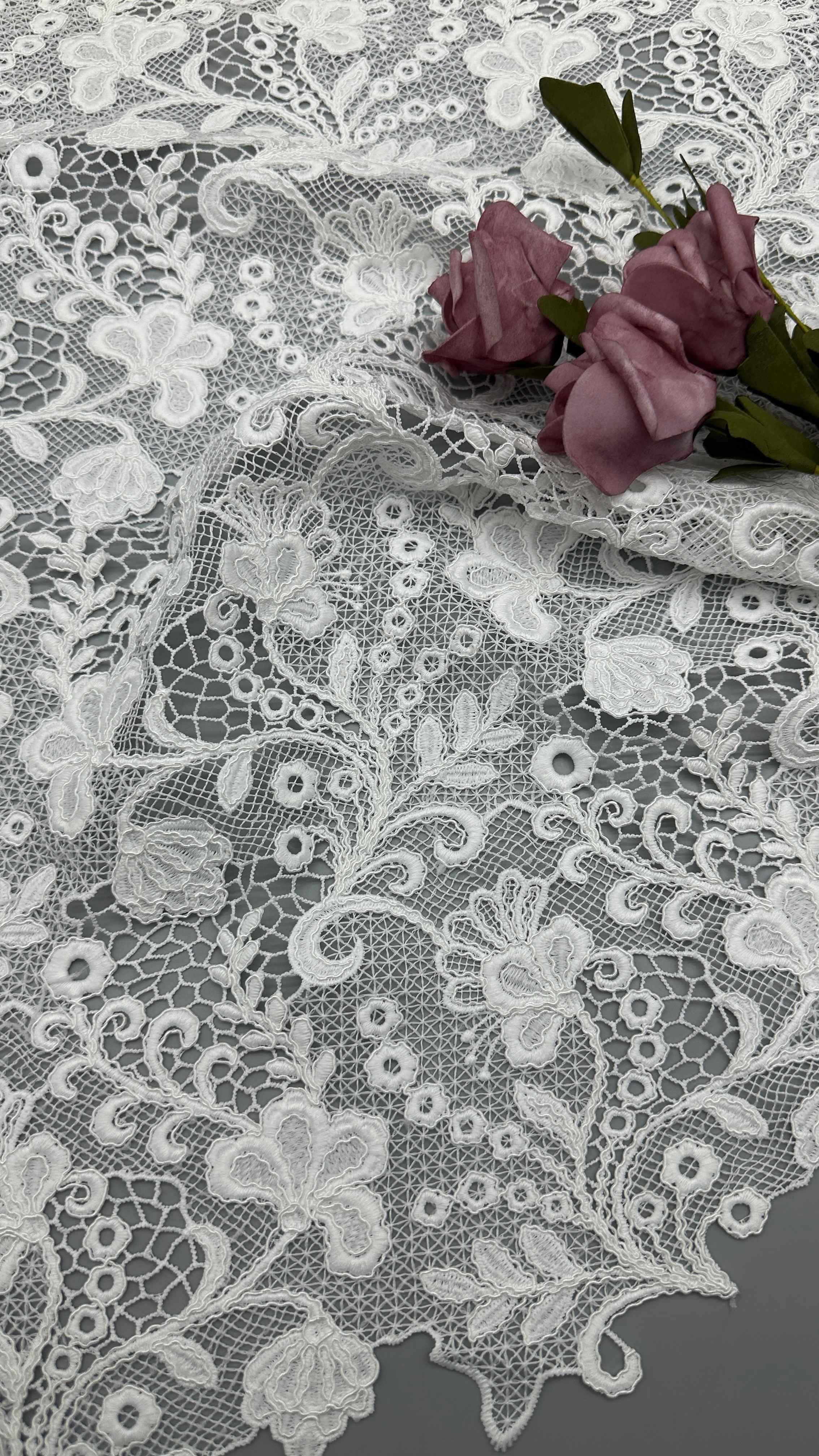 Evidenziare: | Tessuti per ricami chimici di larghezza completa,Tessuti bianchi per ricami chimici,Disegni floreali Tessuto ricamato chimico |