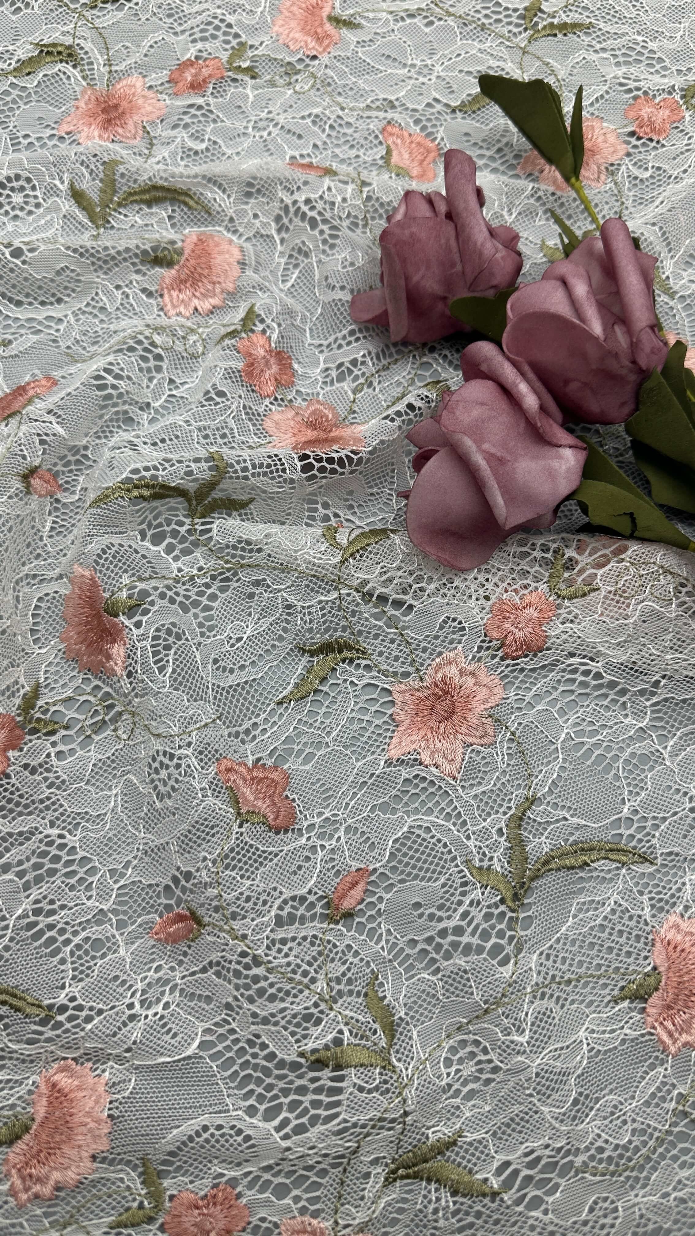 Evidenziare: | Tessuto floreale del pizzo del ricamo,Tessuti in pizzo di cotone al 100%,Tessuto di pizzo ricamato di lusso |
