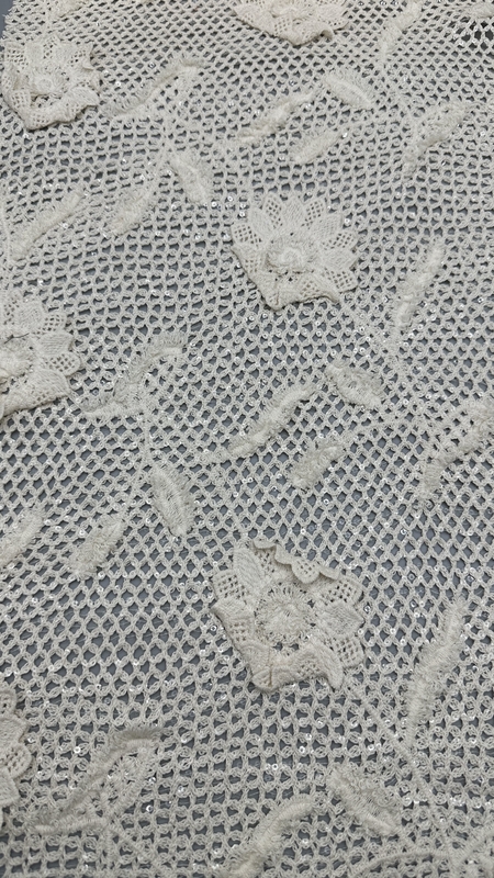 Evidenziare: | Tessuti di pizzo ricamati di alta qualità,Tessuti di ricamo di seta a foglia,Tessuti ricamati in pizzo per abiti da festa |
