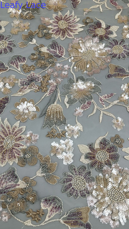 Evidenziare: | Tessuti di ricamo a perline di pizzo,Abiti da sera tessuto ricamato a perline,Tessuti di poliestere con perline ricamati |