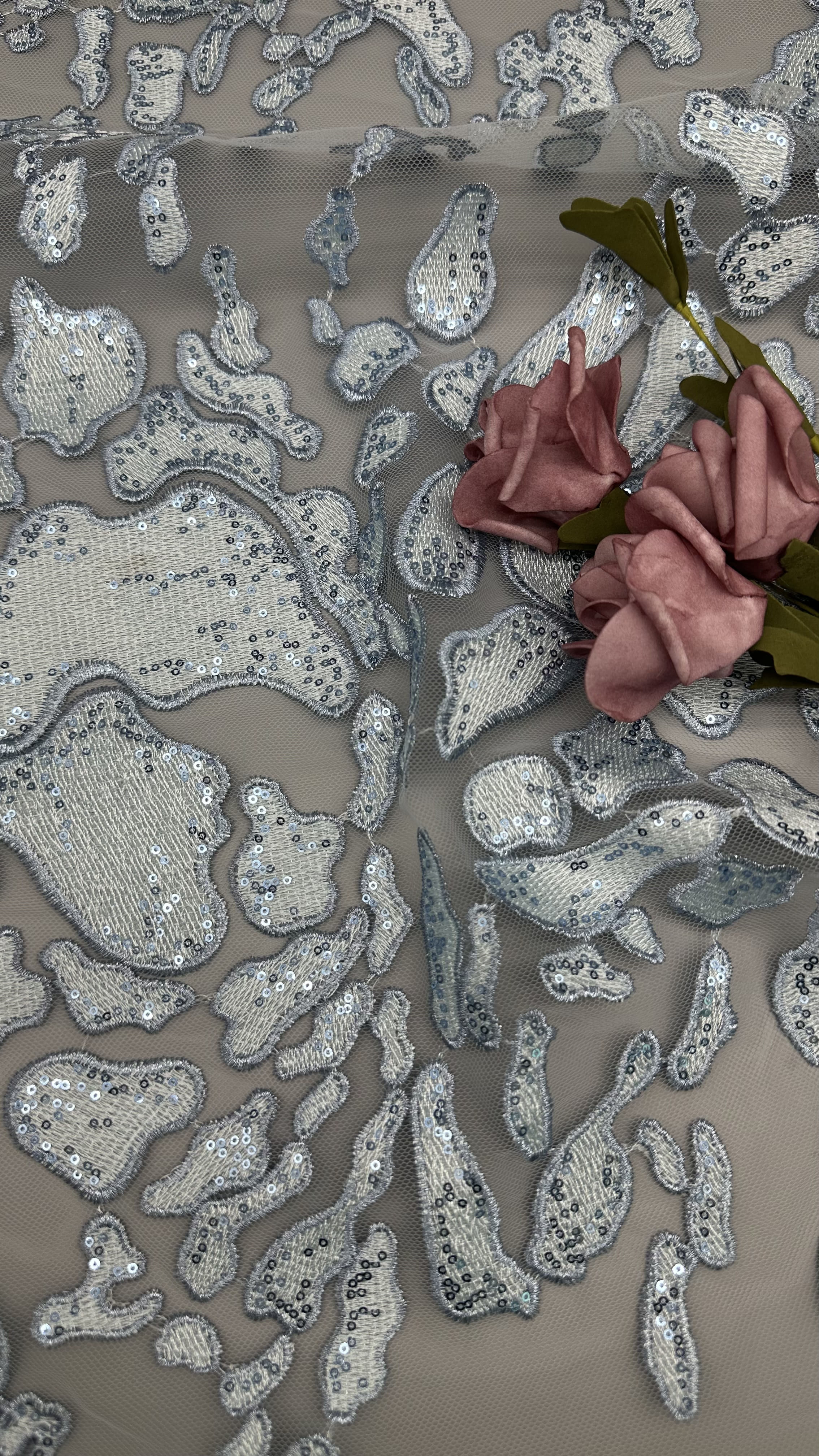 Evidenziare: | Tessuto di pizzo ricamato e lucente,Tessuto intricato di pizzo veneziano,Tessuti di pizzo di seta ricamati vintage |