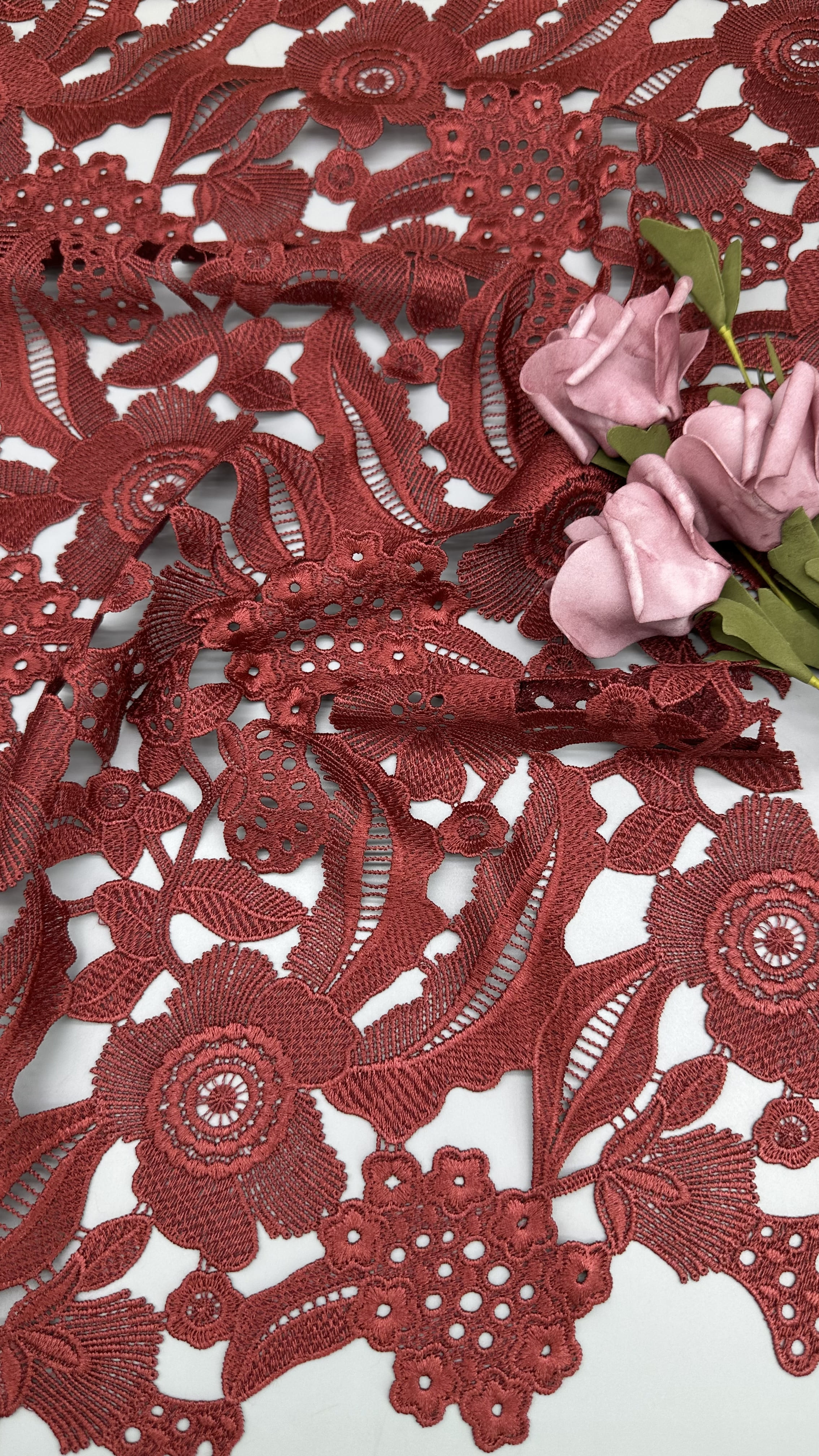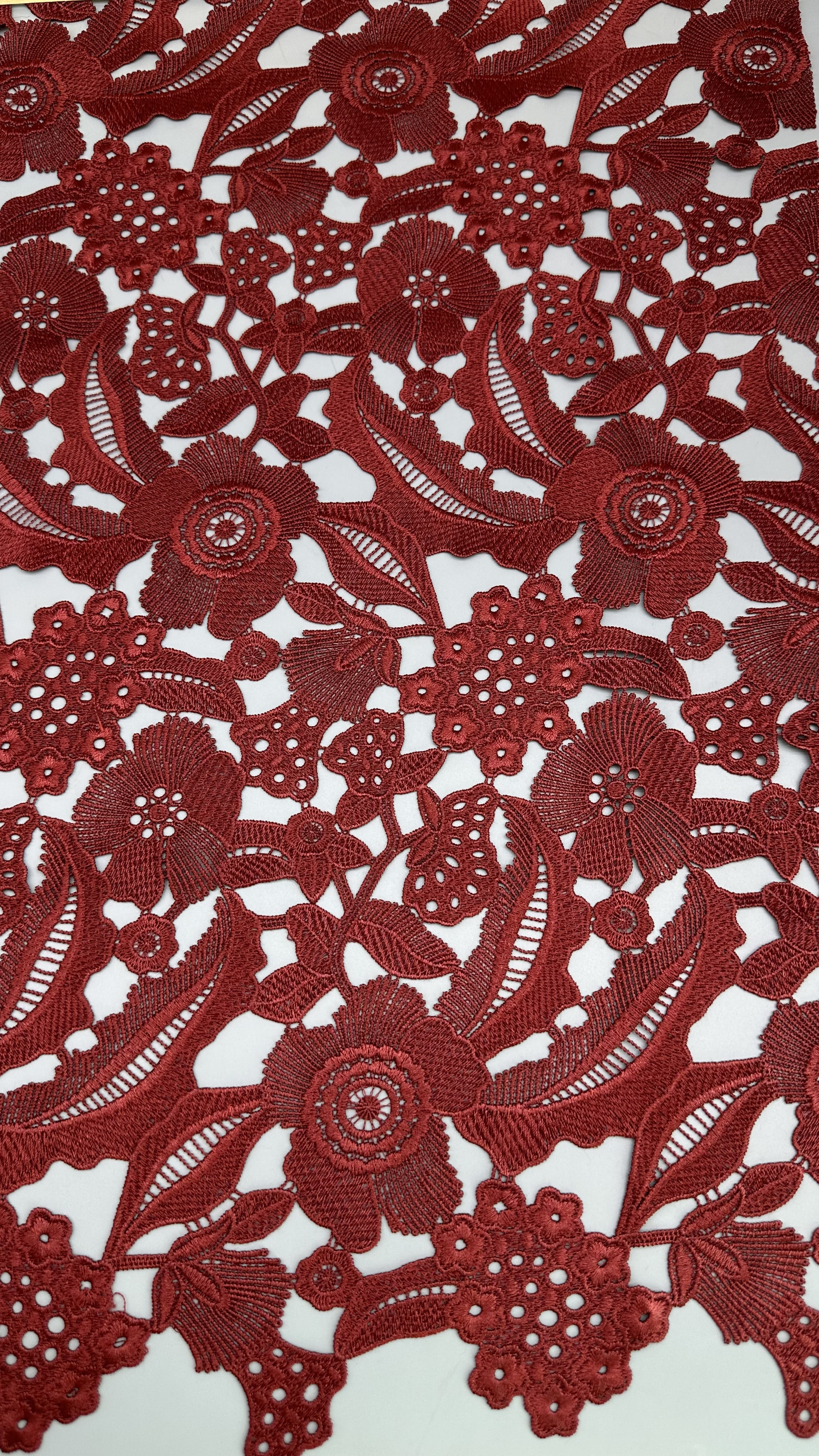 | Evidenziare: | Svuotate il tessuto di pizzo,Tessuti di pizzo ricamati a foglia,Elegante tessuto di pizzo rosso |