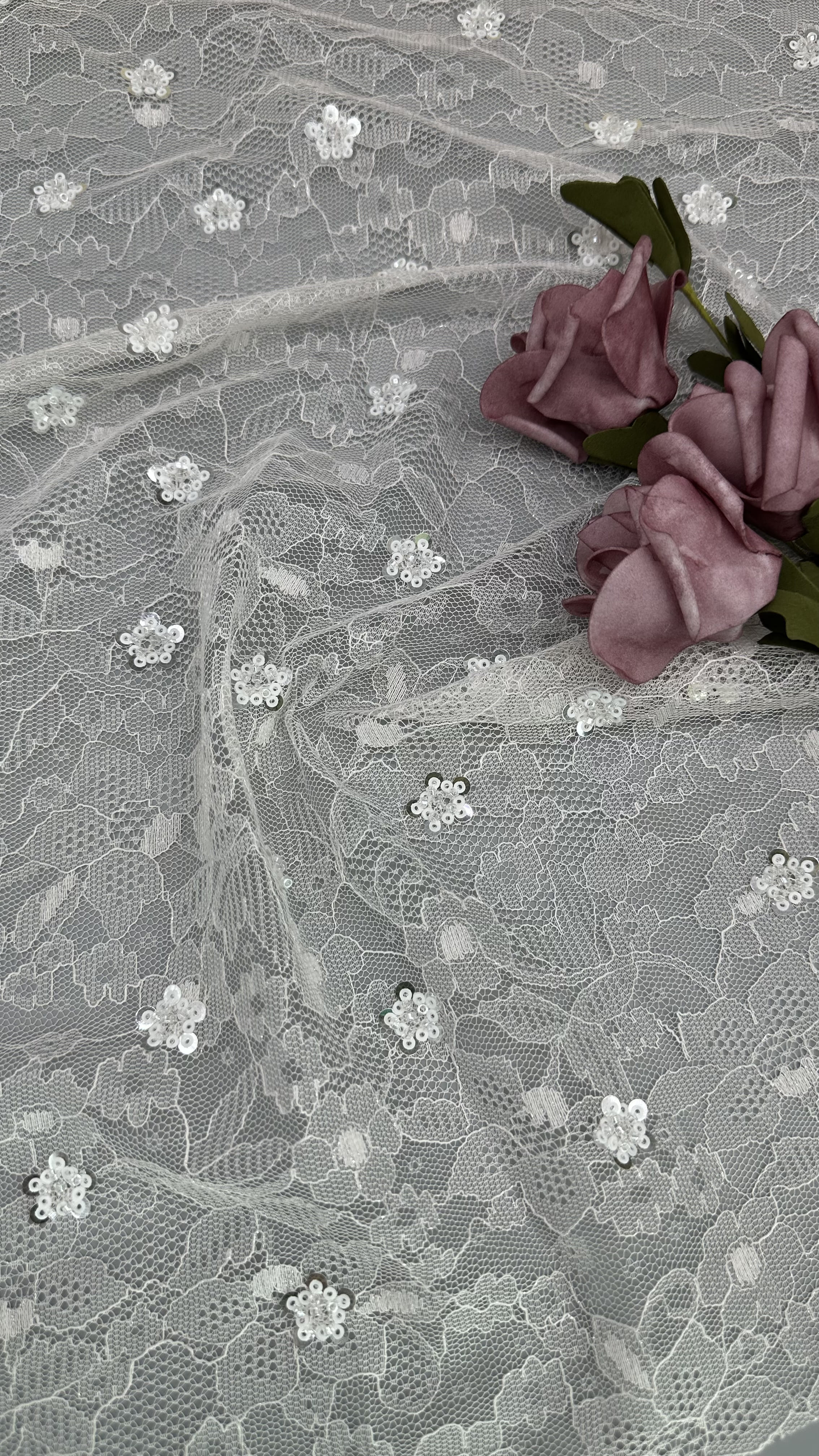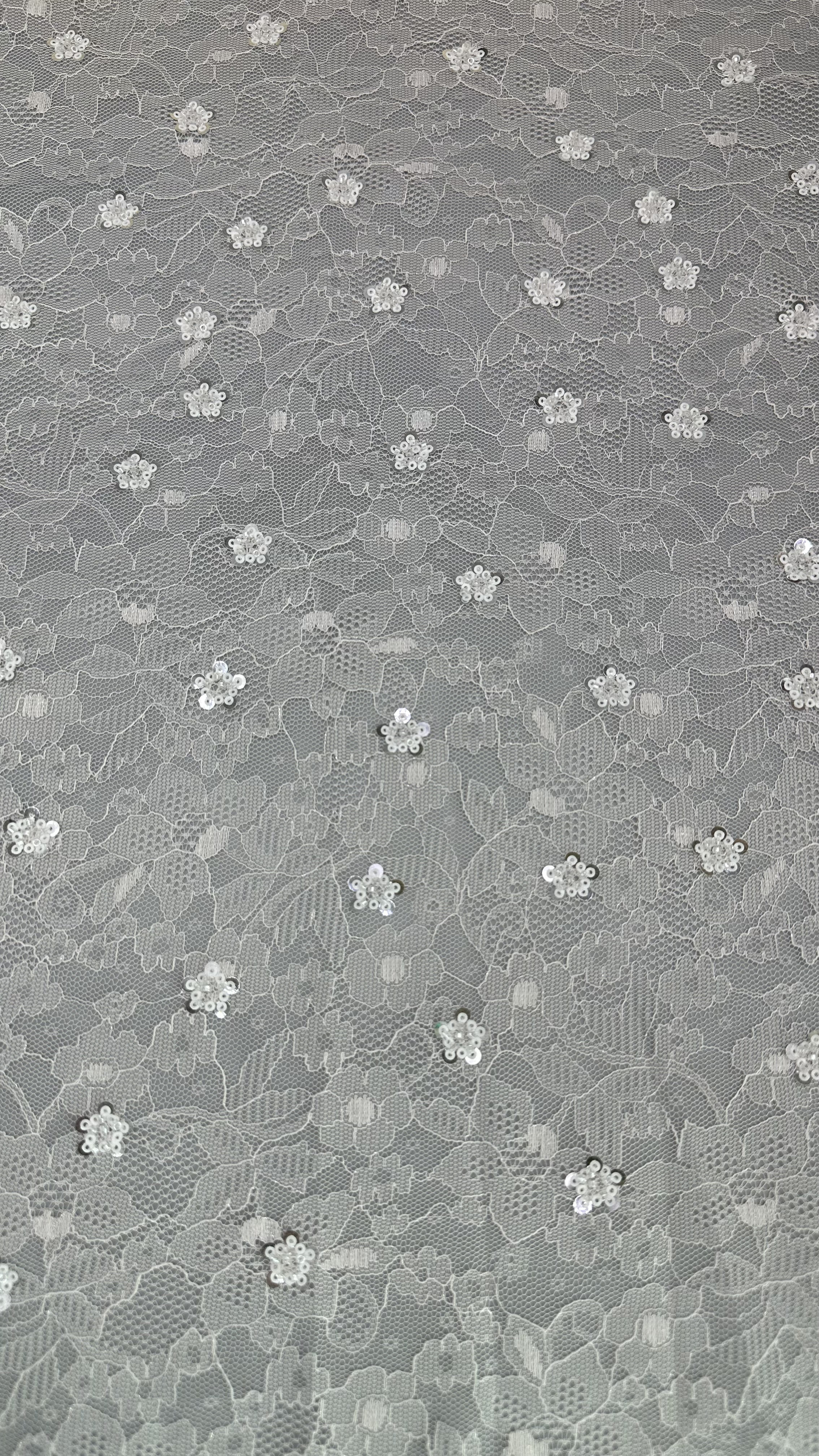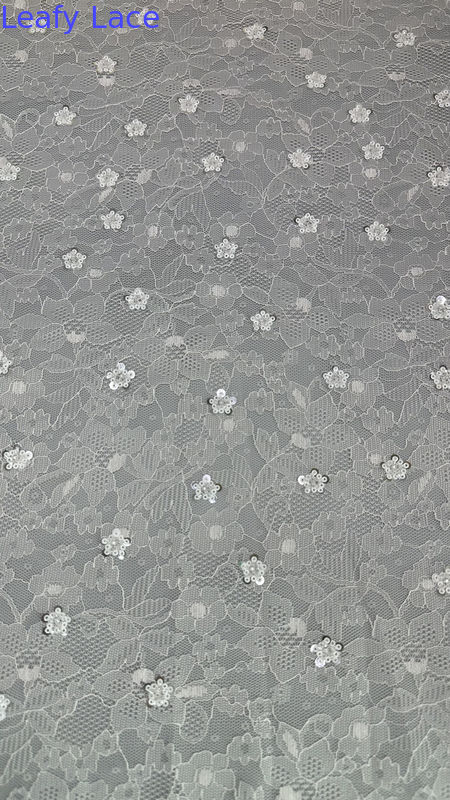 Evidenziare: | Tessuto di pizzo bianco francese Chantilly,Tessuti di pizzo di sequin |