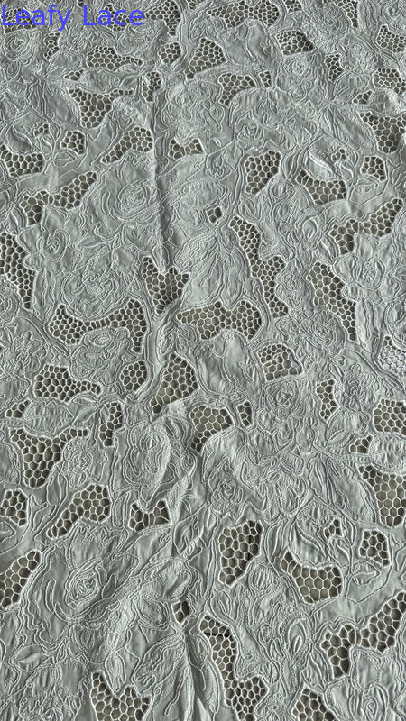 Tessuto in pizzo ricamato di alta qualità White Hollow-up con tecnologia laser per abito da sposa