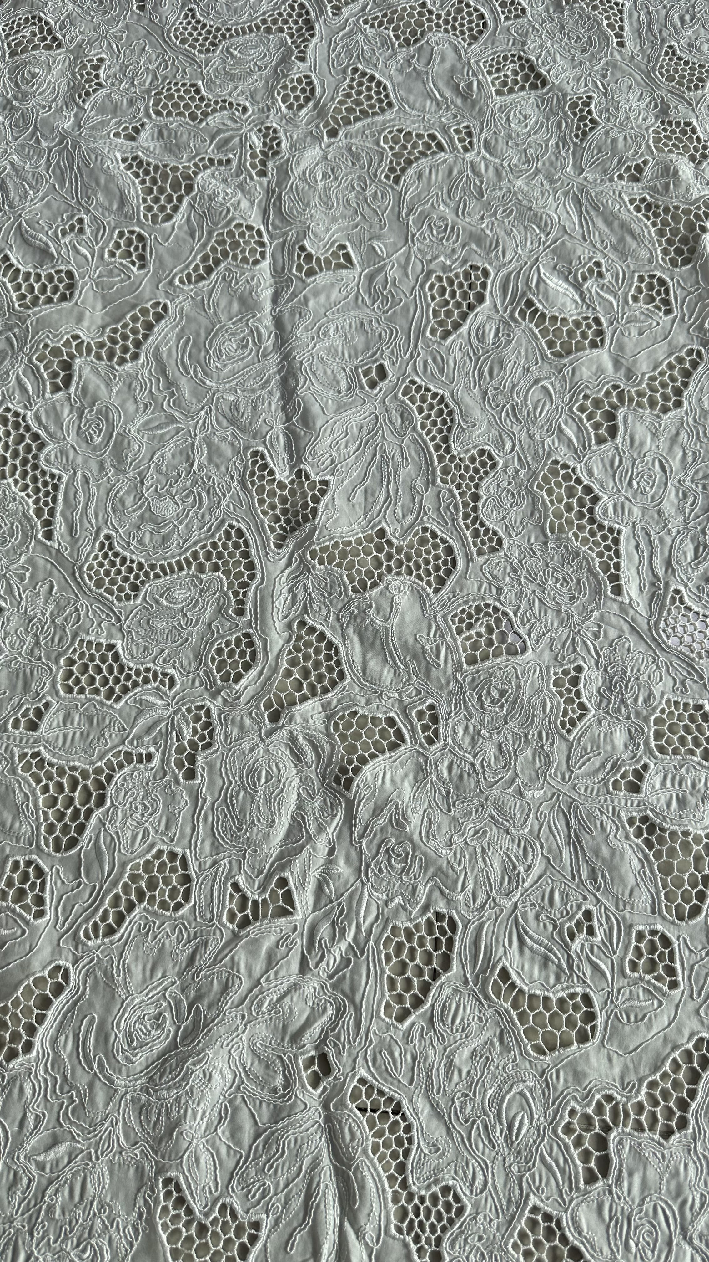 Tecnologia laser per abiti da sposa con tessuto di pizzo ricamato bianco. 4