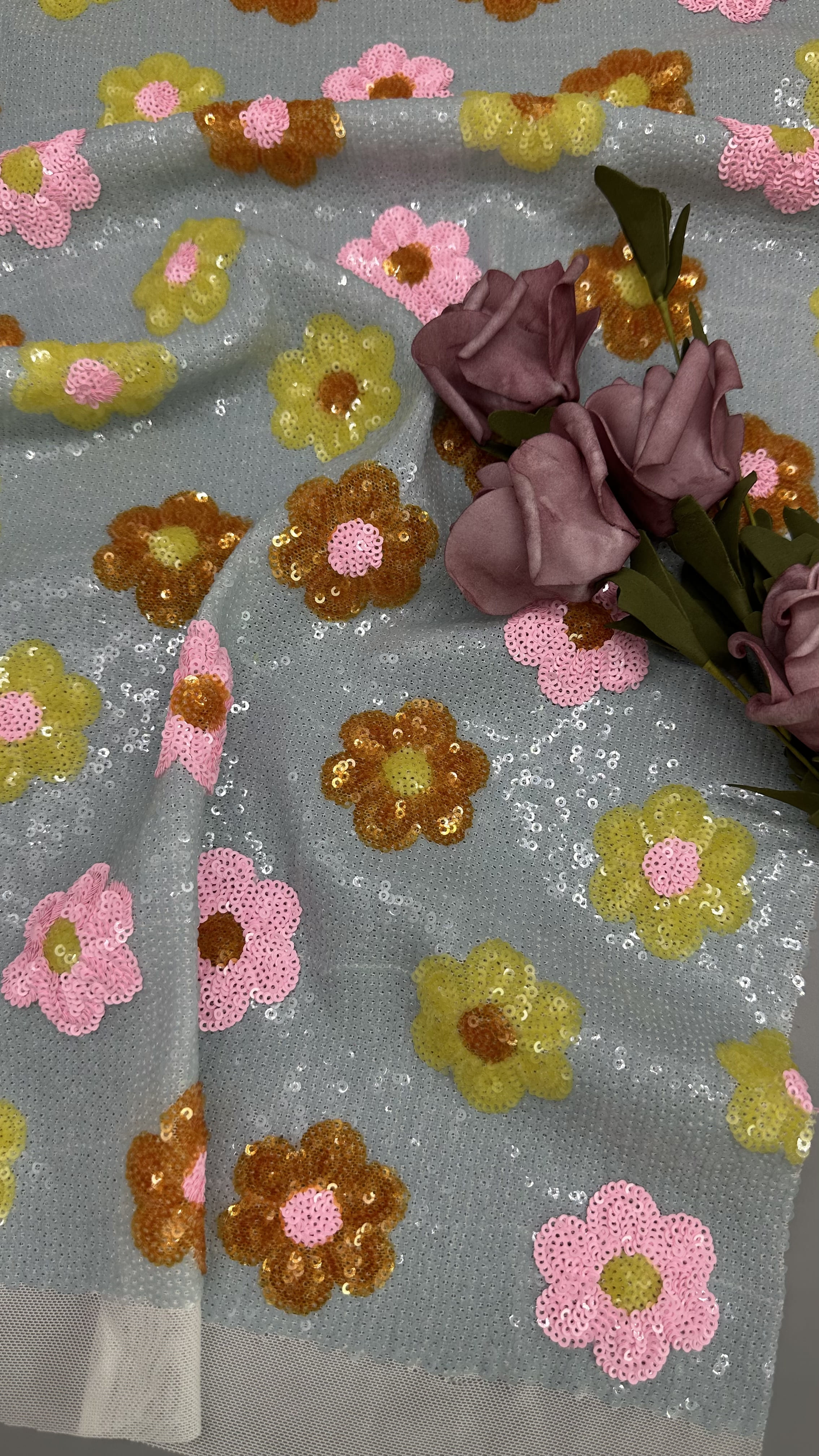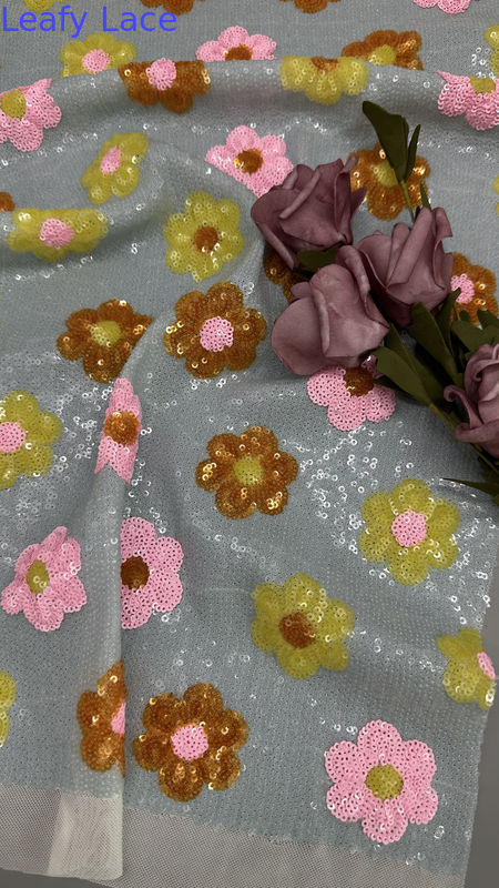 Evidenziare: | Tessuto in pizzo floreale 3D per abiti,Tessuto in pizzo floreale 3D con paillettes,Tessuto di lusso con paillettes e pizzo floreale 3D |