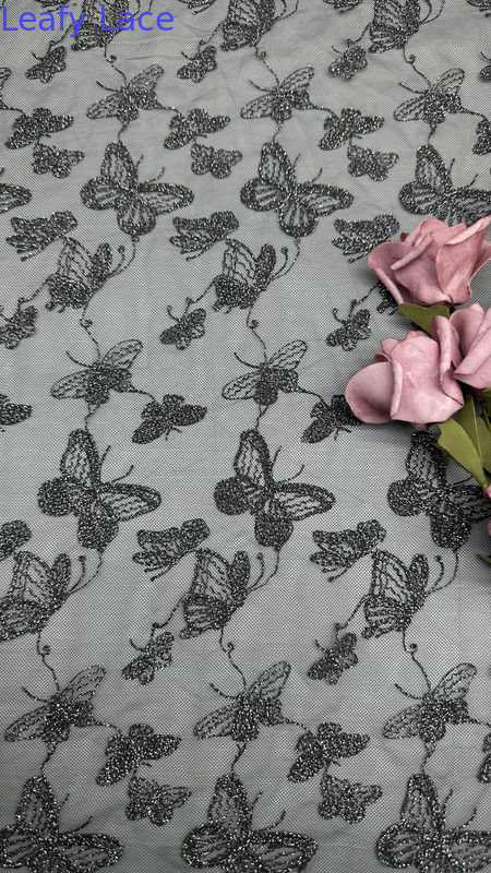 Evidenziare: | tessuto di pizzo nero Chantilly,materiale di pizzo per matrimoni di lusso,Reti di pizzo chimica romantica |