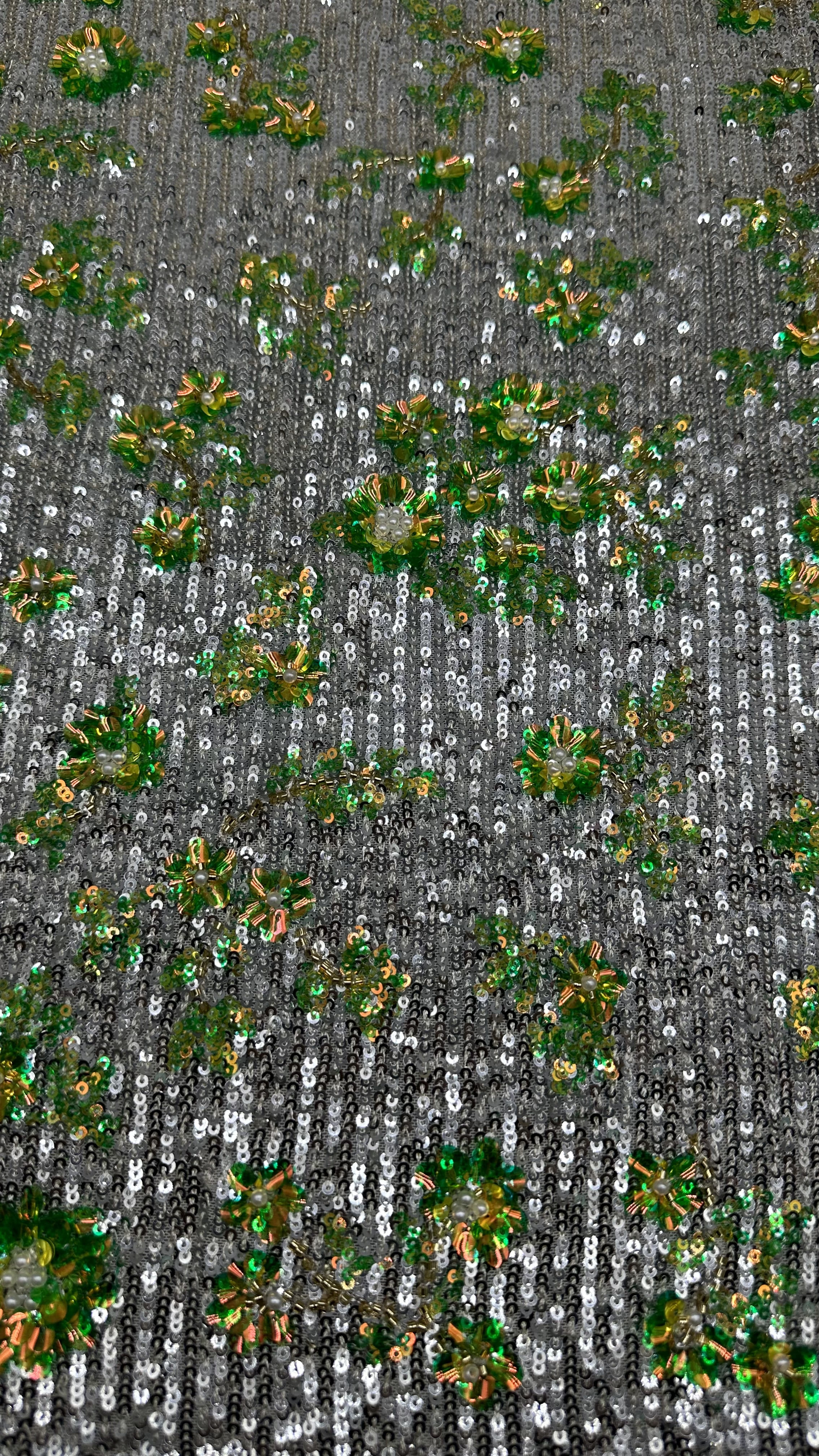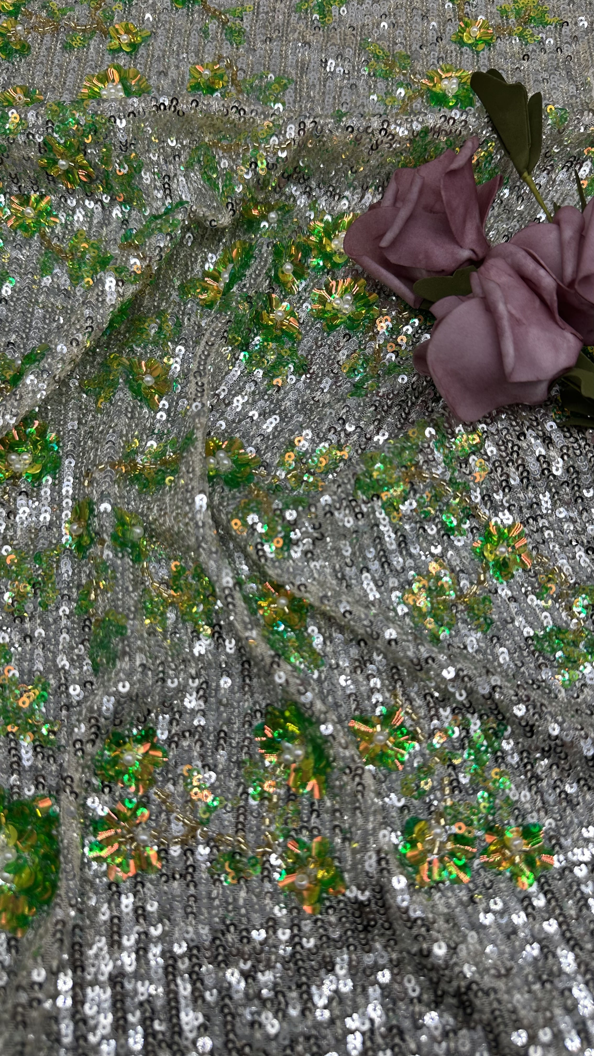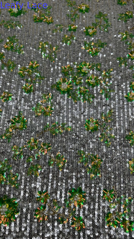 | Evidenziare: | tessuto ricamato con paillettes bianco verde,tessuto in pizzo con paillettes per abiti da sera,tessuto ricamato per abiti |