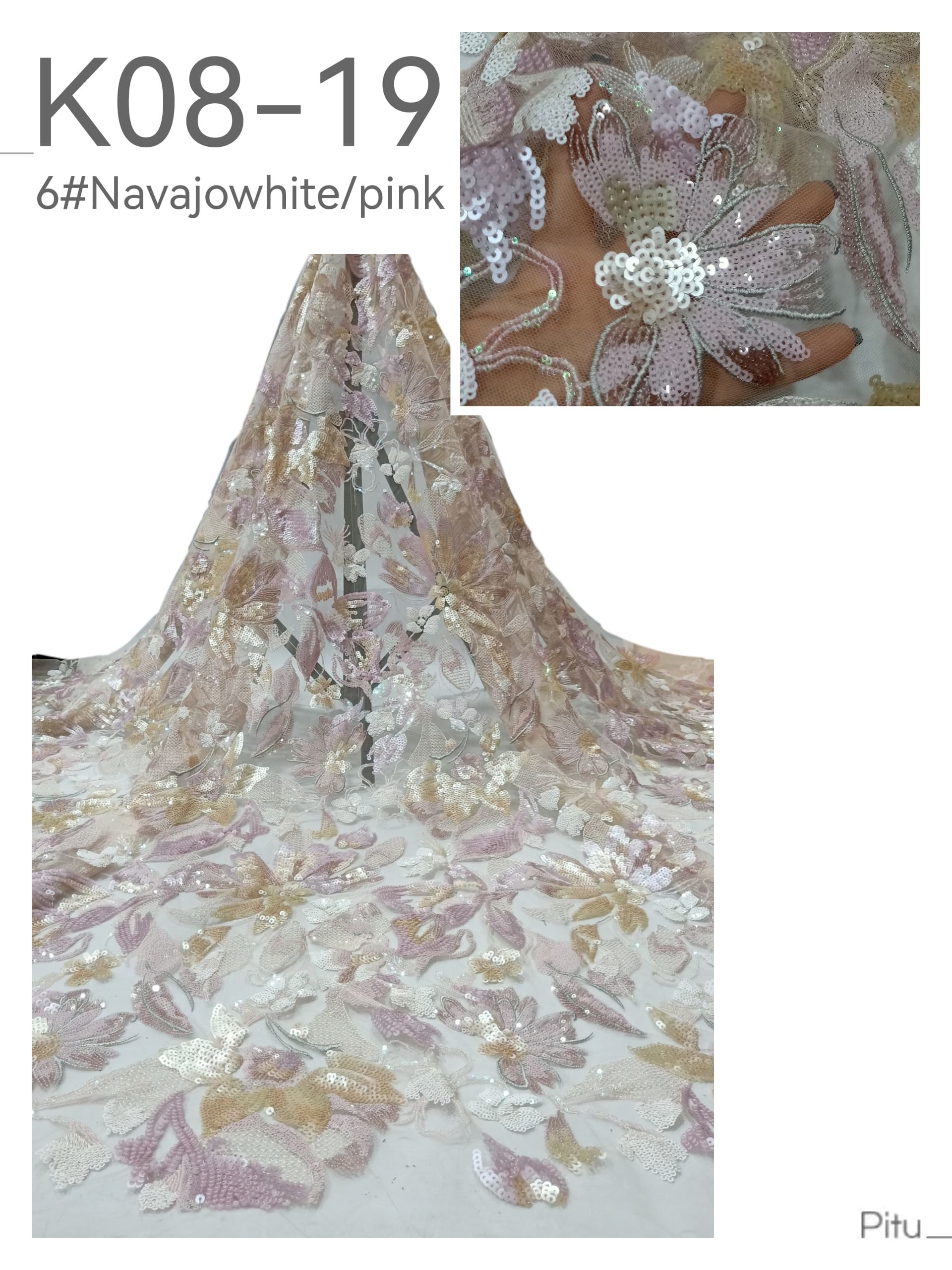 | Evidenziare: | Tessuti ricamati per donne,Tessuto ricamato a seghe floreali 3D,Tessuto ricamato con paillettes per abiti da sera |
