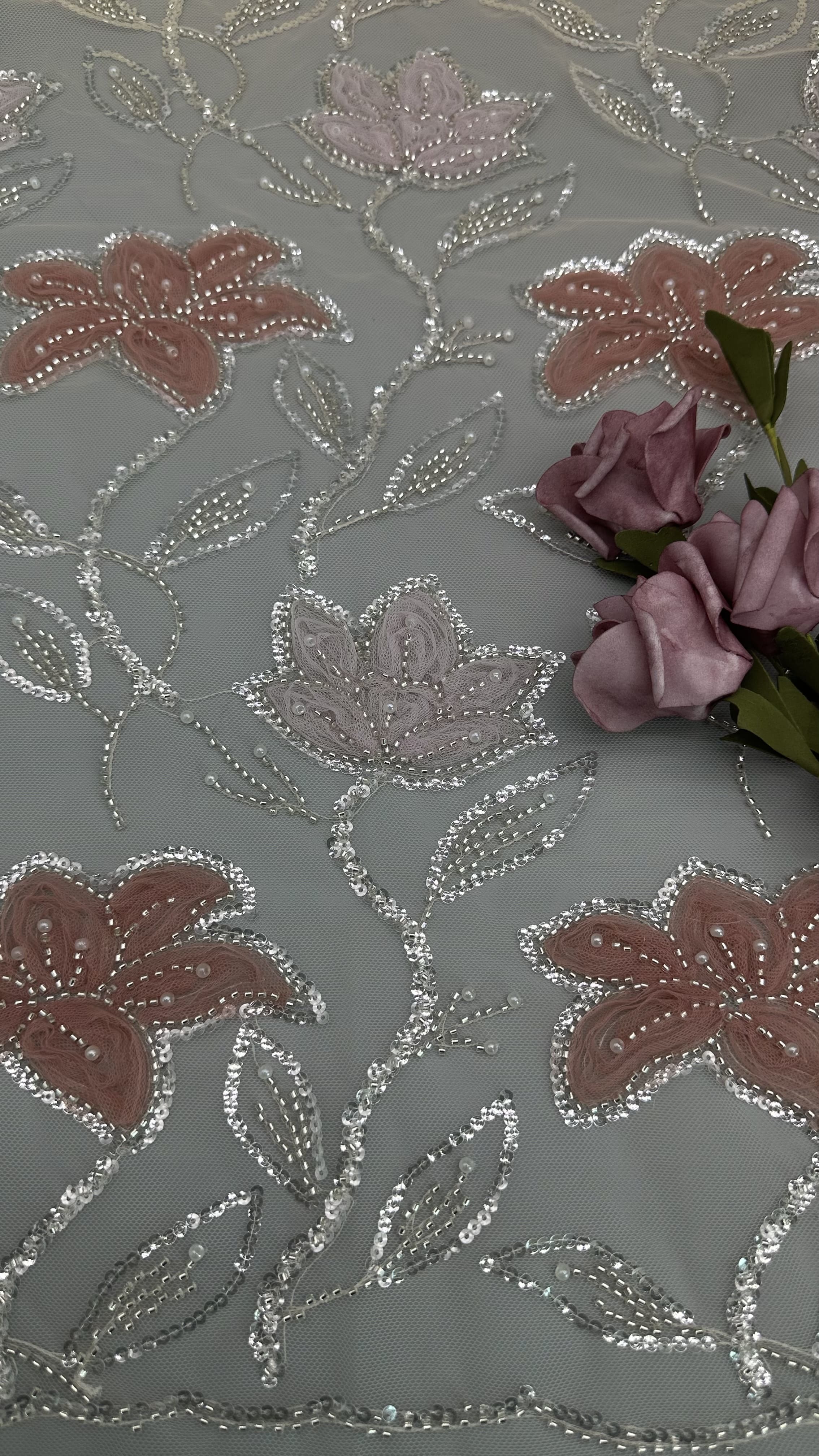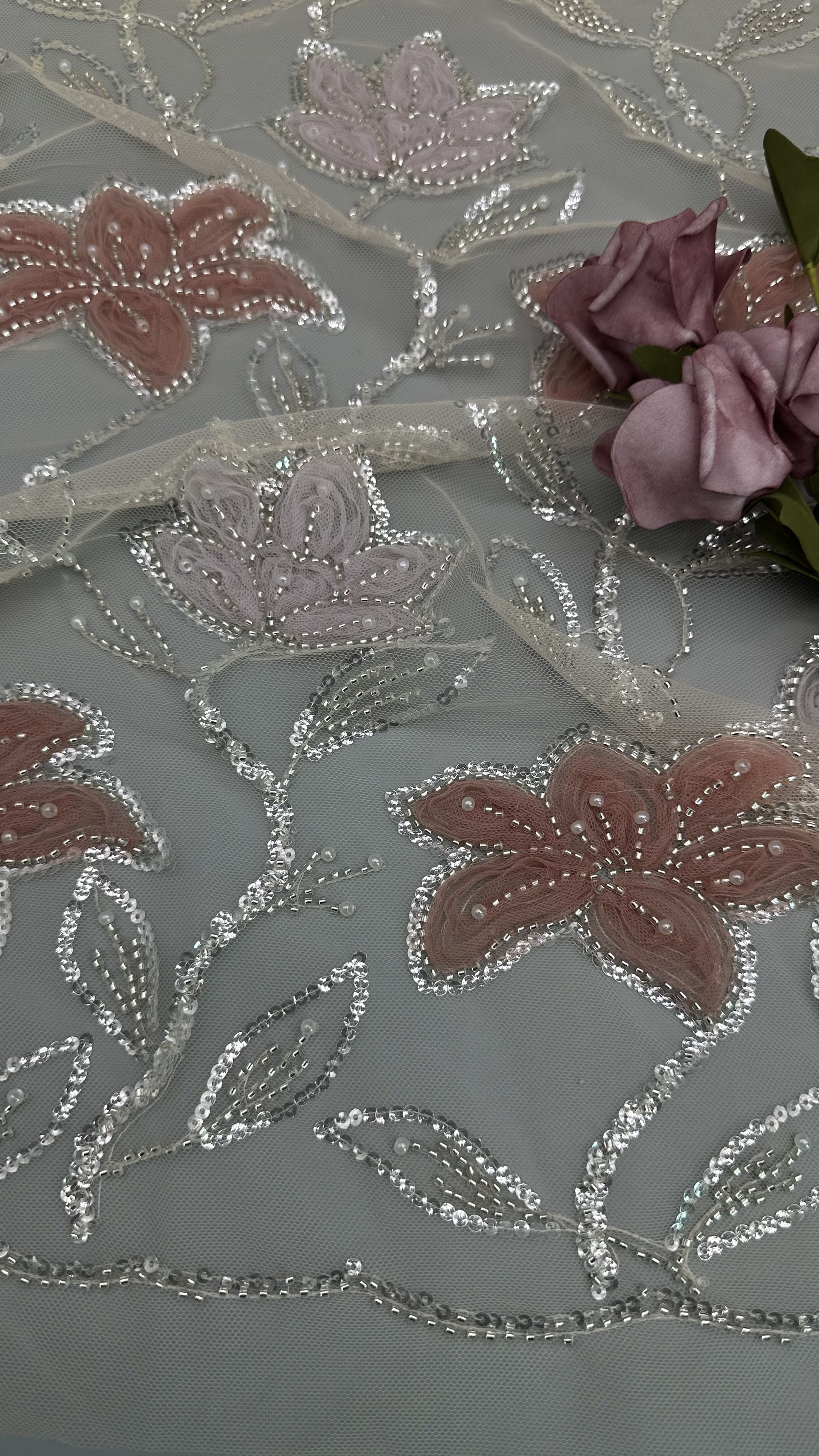 Evidenziare: | Tessuti di pizzo ricamati a perline,Tessuti di pizzo a perline di poliestere |