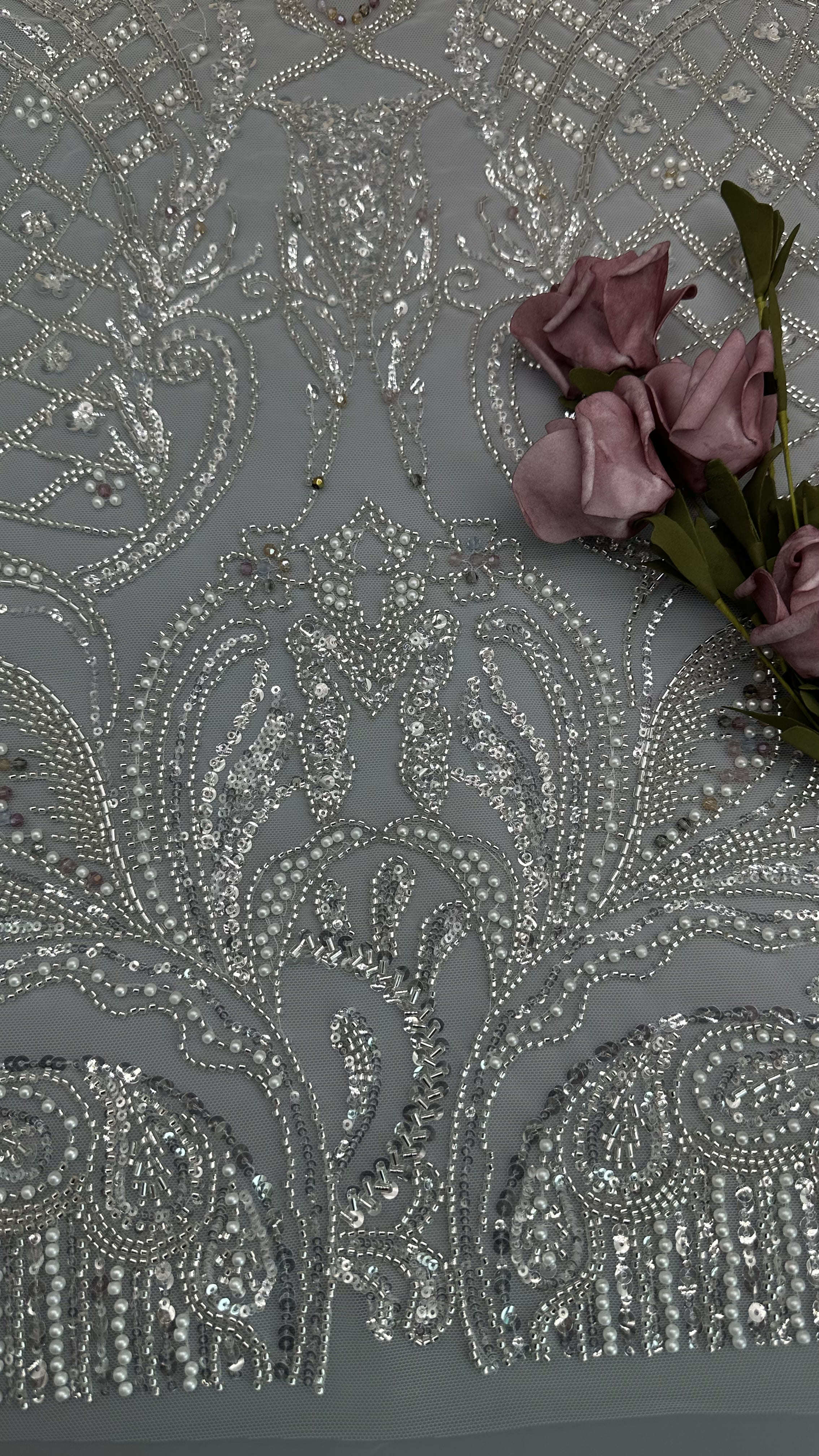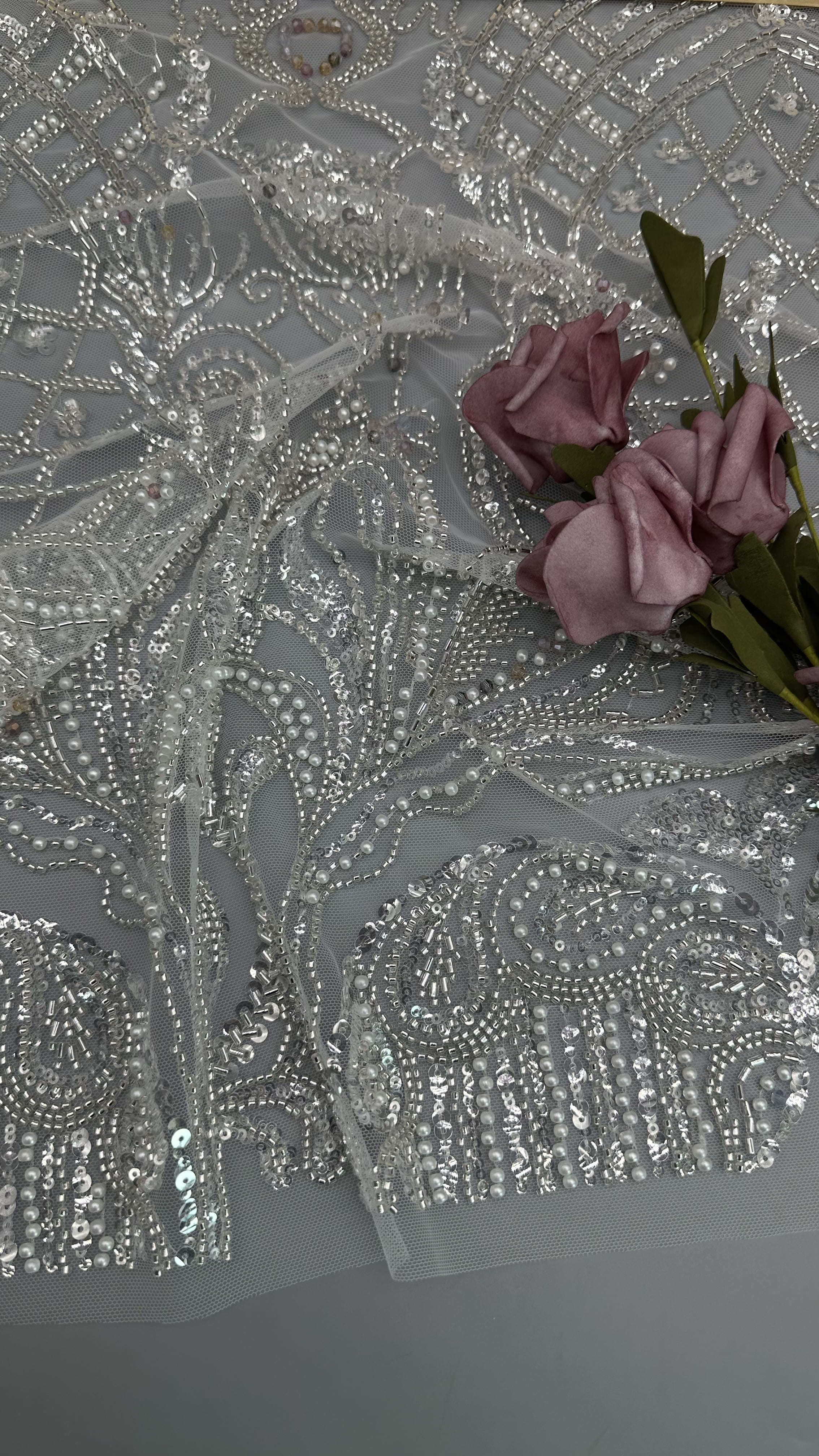 Evidenziare: | Tessuti di pizzo ricamati a perla,Tessuti di pizzo ricamati con perle |