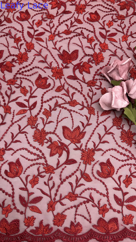 | Evidenziare: | Tessuto di pizzo ricamato rosso,Tessuto di pizzo ricamato con foglie,Tessuti di pizzo ricamati a maglia |