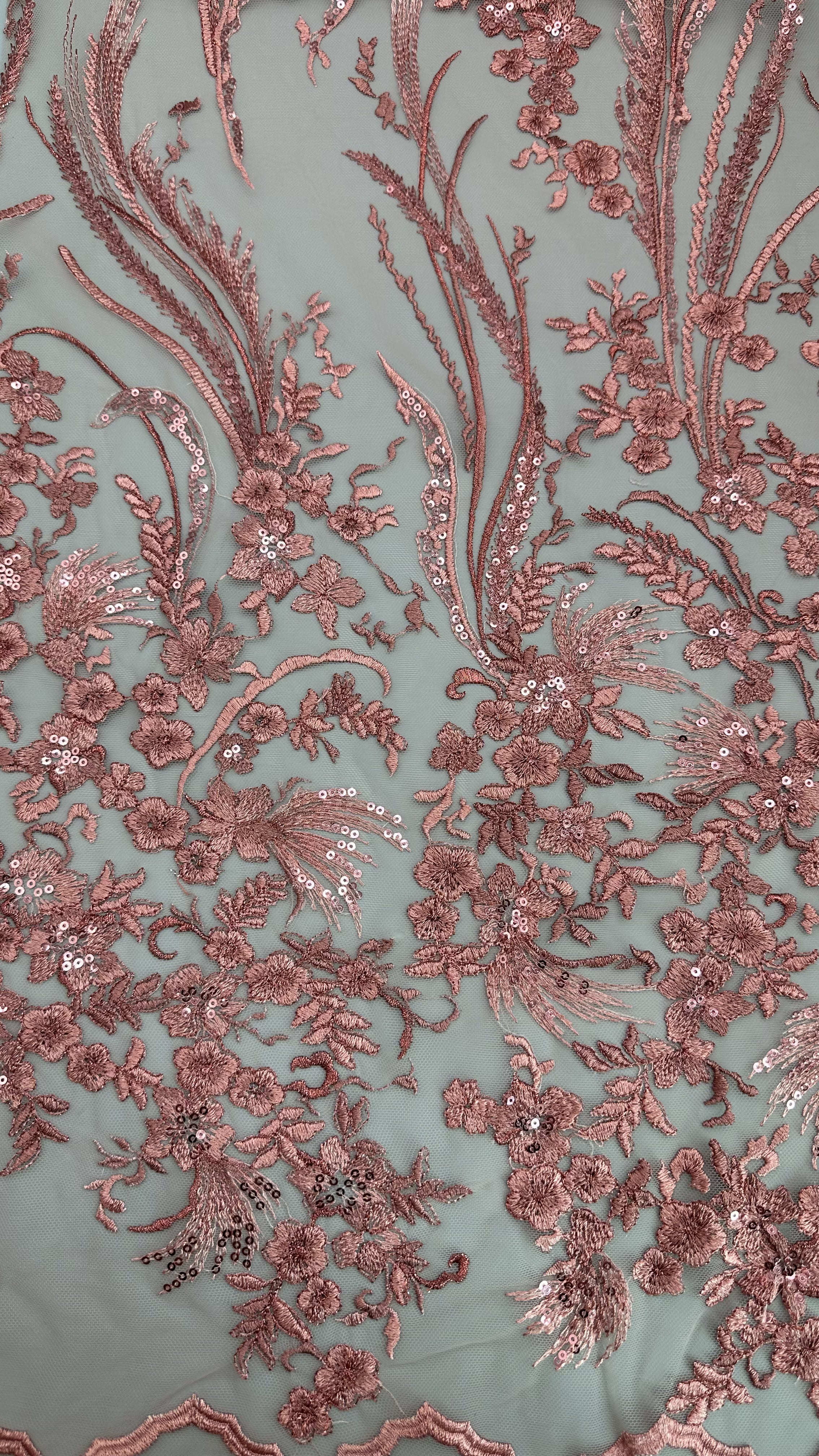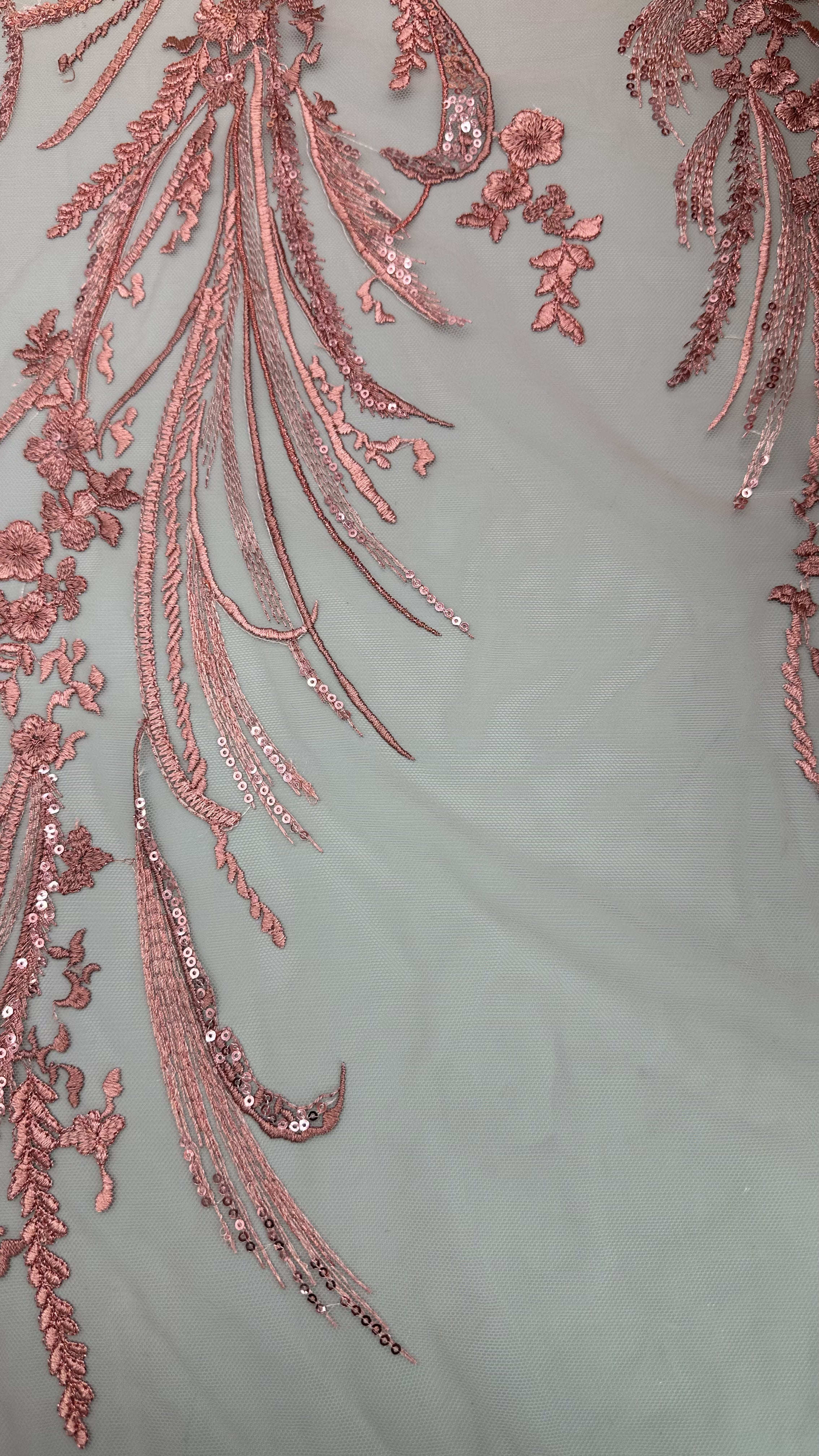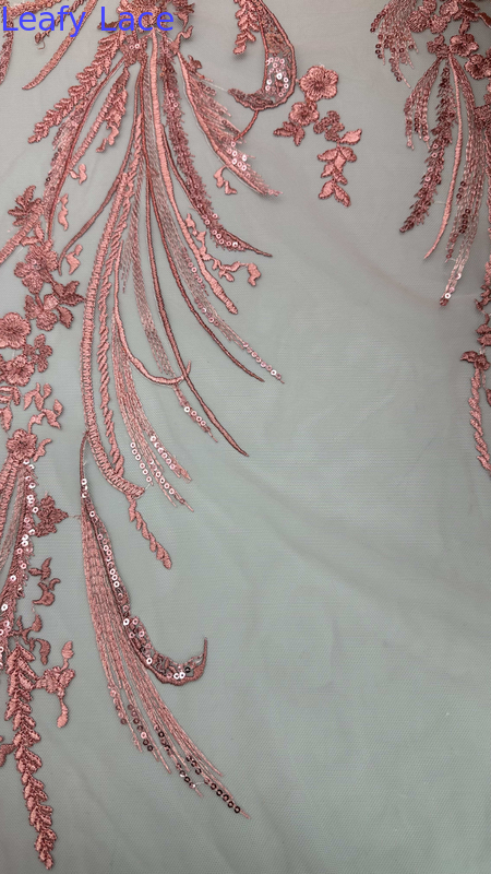 Il tessuto ricamato in pizzo con delicati motivi di foglie è una scelta popolare per abiti da sposa e da festa, che offrono eleganza, consistenza e dettagli complessi.La tecnologia di produzione è una miscela di artigianato tradizionale e innovazioni tessili moderne.
