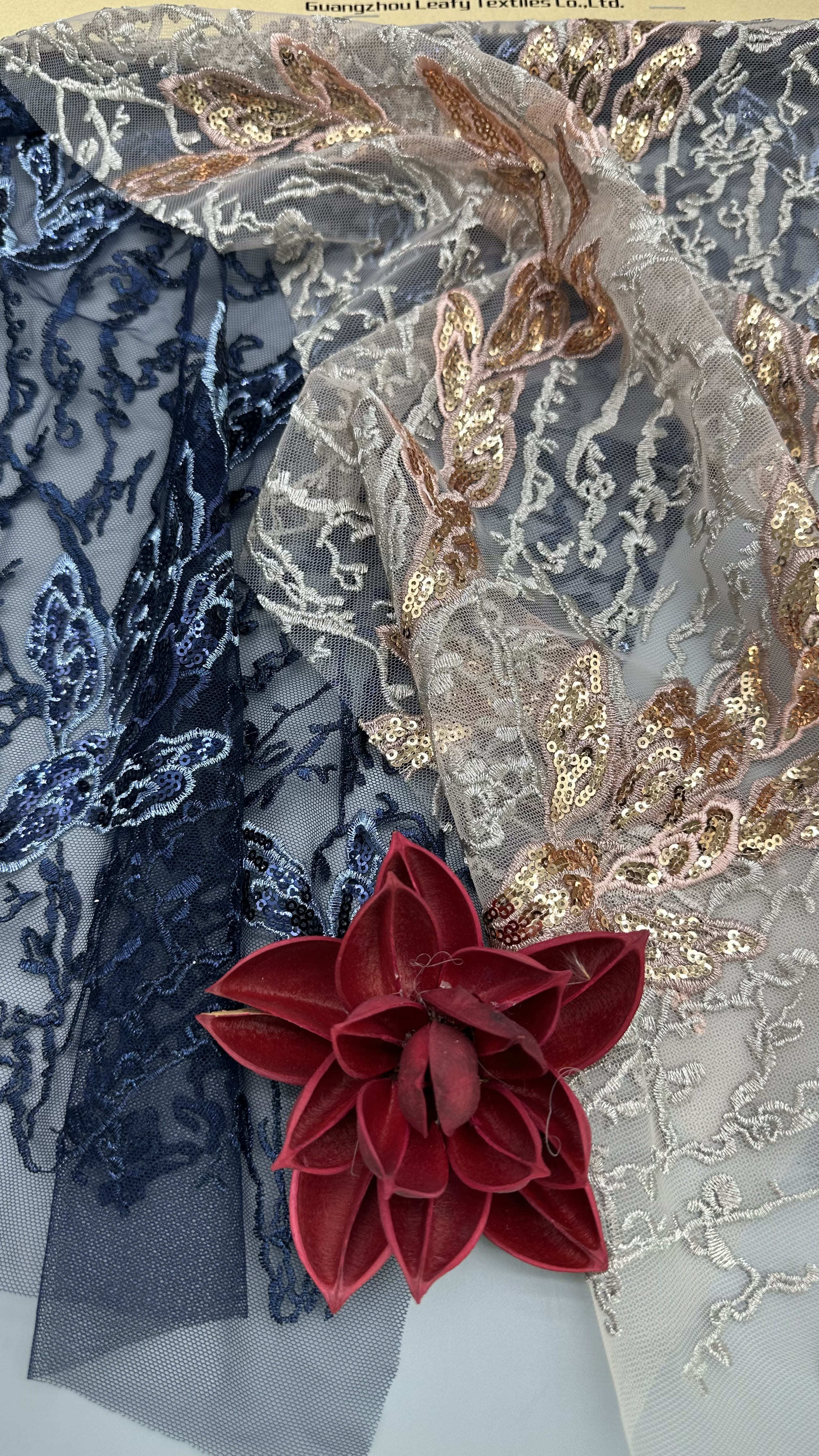 | Evidenziare: | Tessuto in pizzo ricamato con paillettes per abiti,Tessuto a rete personalizzato per abiti da sposa,Materiale in pizzo con paillettes per abiti da festa |