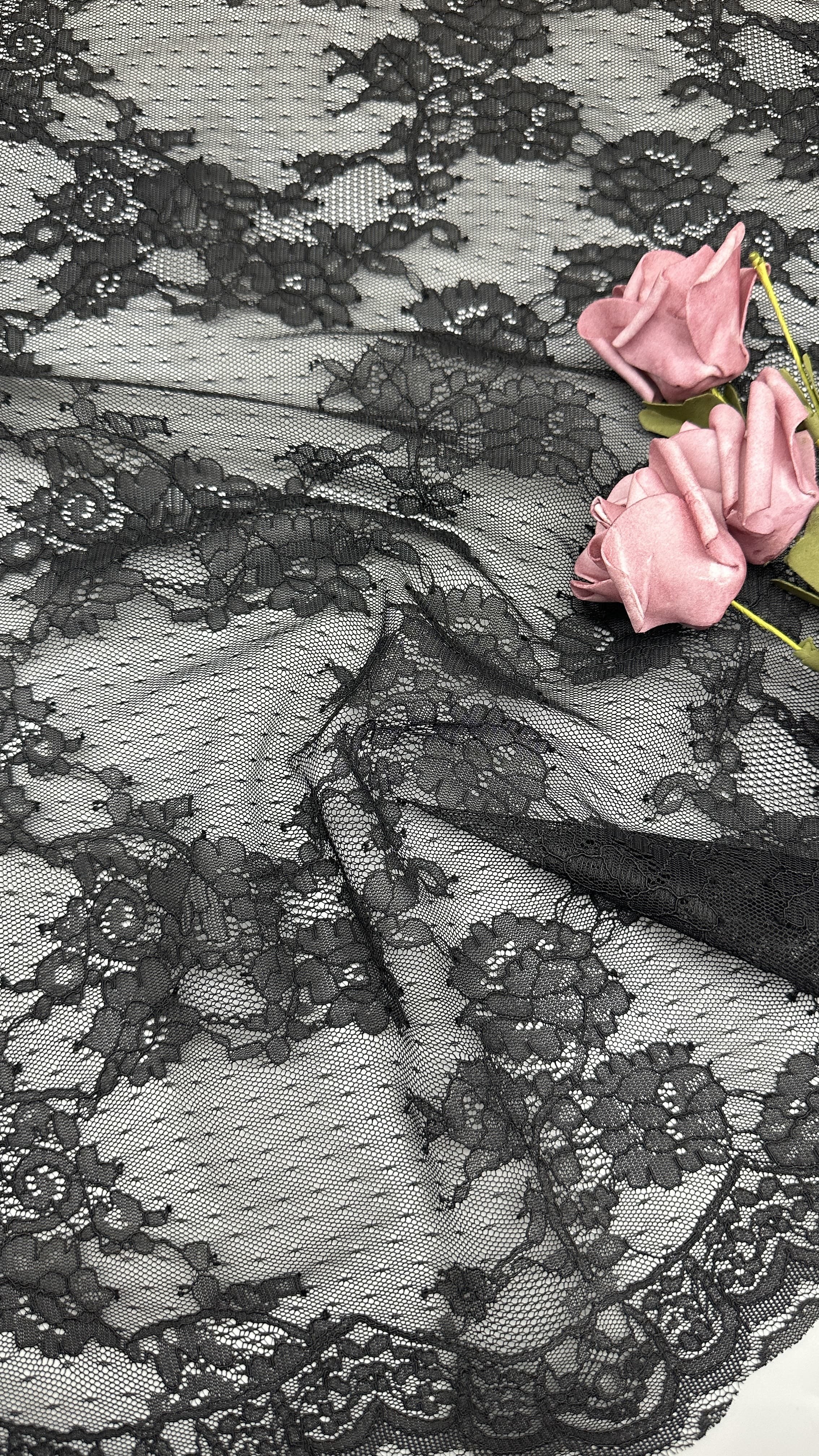 | Evidenziare: | Black French Chantilly lace trim,Elegant Chantilly lace for wedding dresses,Guipure lace trim for dresses |